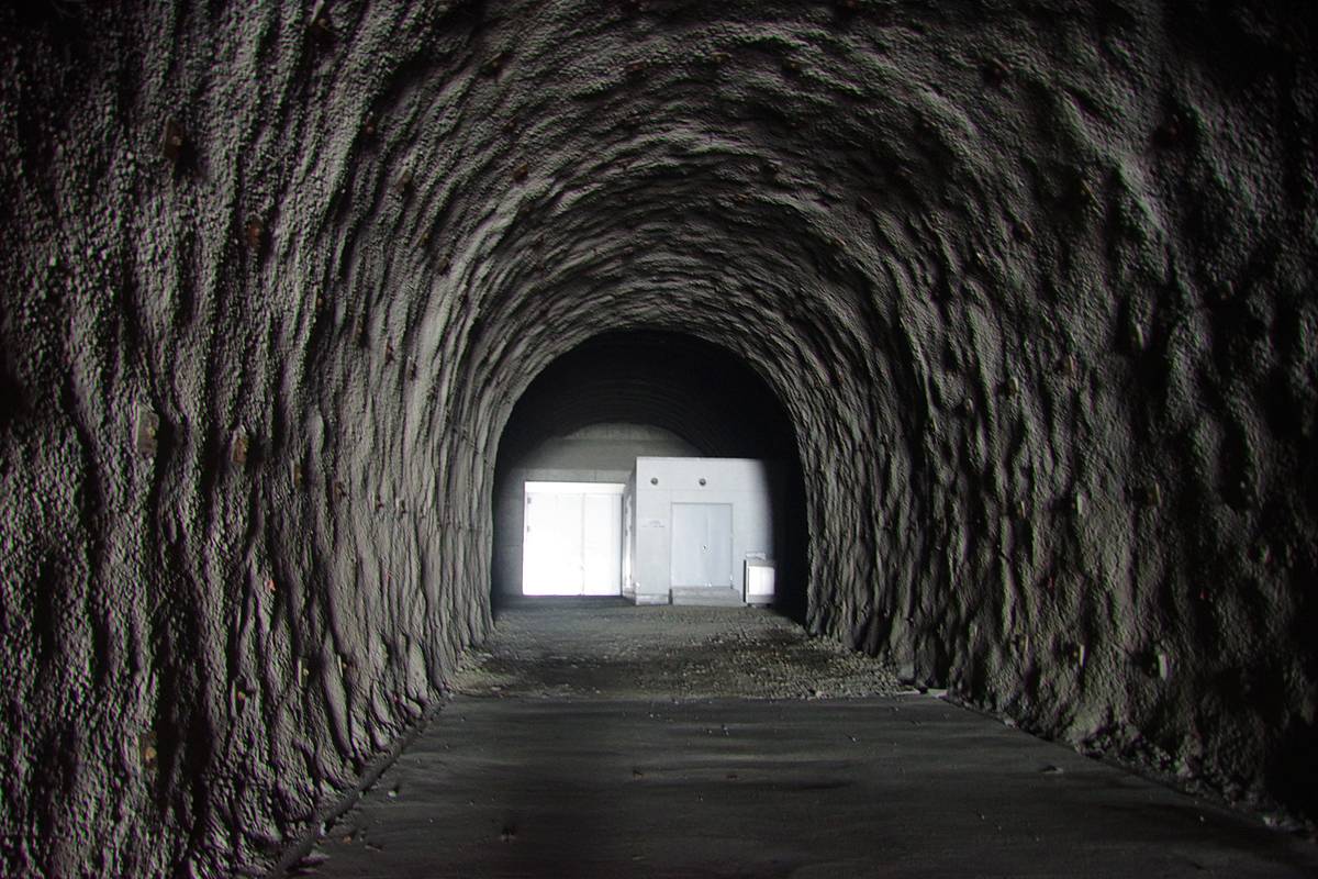 内壁は素掘りにコンクリート吹付けのままで、格子状にNATMのボルトが露出している。綺麗な本坑とは違う、いかにも工事用の舞台裏って感じだ。