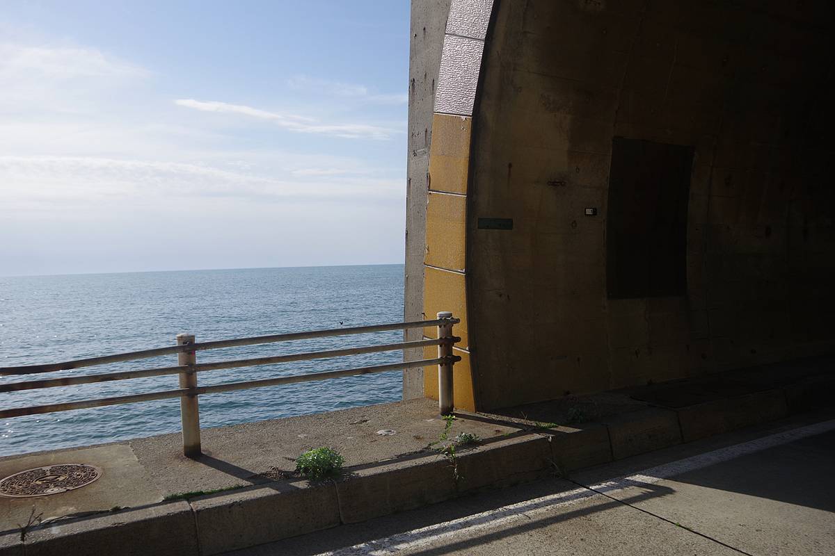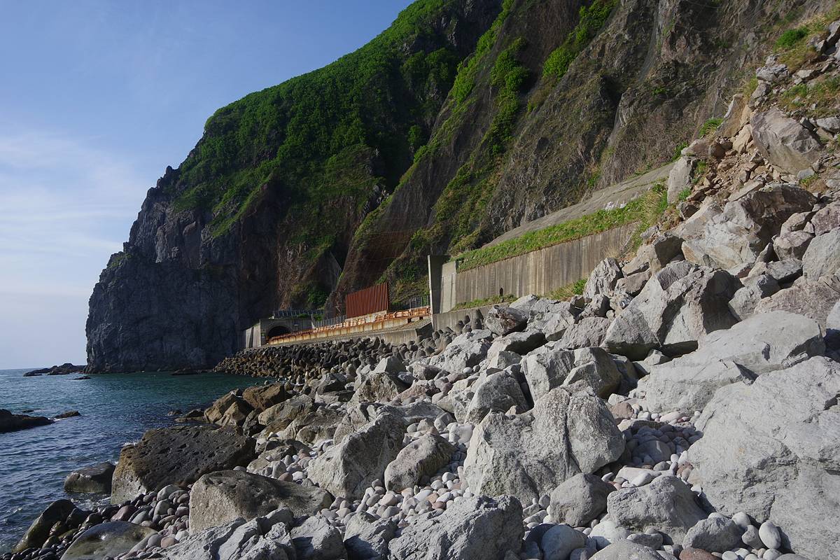 やっとの感じで、道内最長(だったこともある)ガマタトンネルを突き破り、千代志別覆道沖までやって来た。
