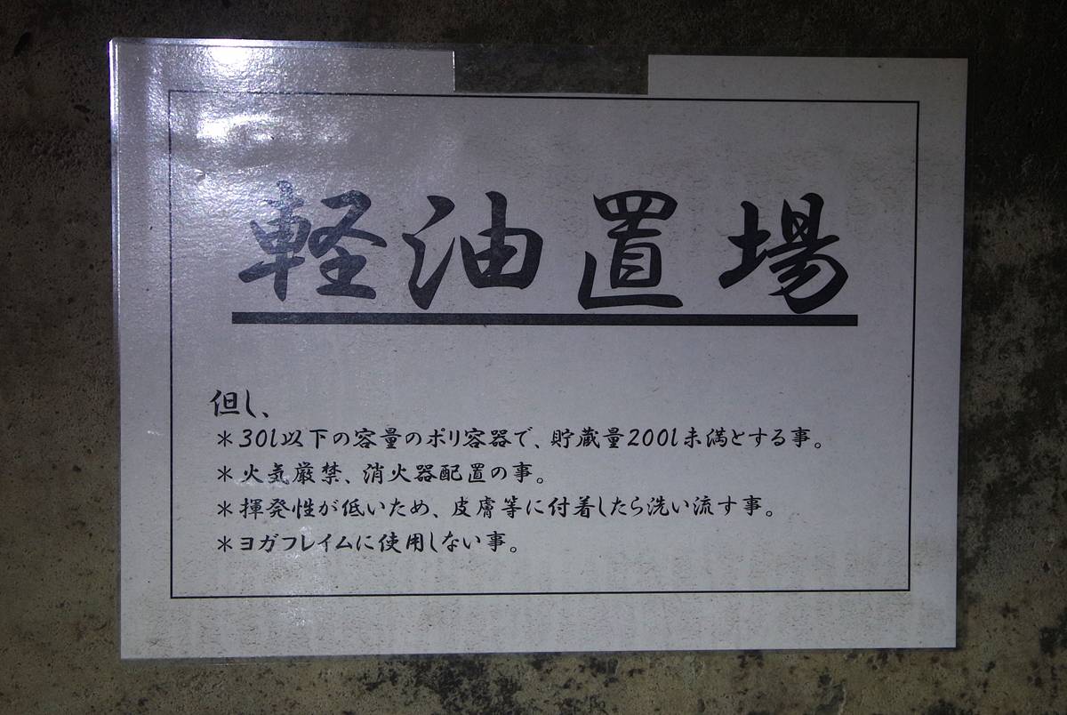 背後の壁には、「マムシ注意」の黄色いステッカーが貼ってある。残されたモノが、微妙に抜け殻感ある。