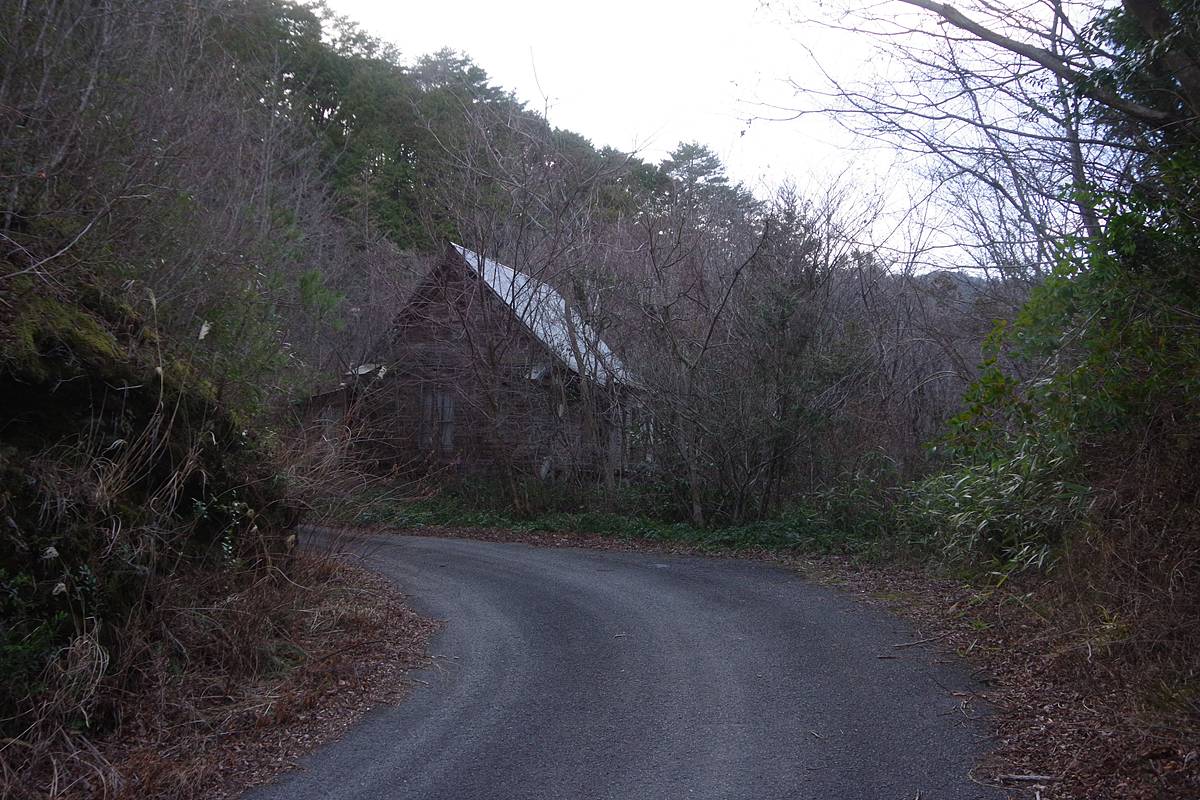 ギザギザとした山肌の小さな尾根を回り込むと、その先の路傍に、ログハウス風のさほど古く見えない家屋が現われた。
