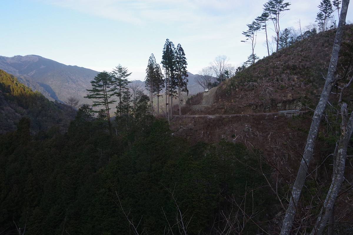 旧道が踏み込んだ伐採地は思いのほか広く、木もガードレールも全くないから、視界が開けた。