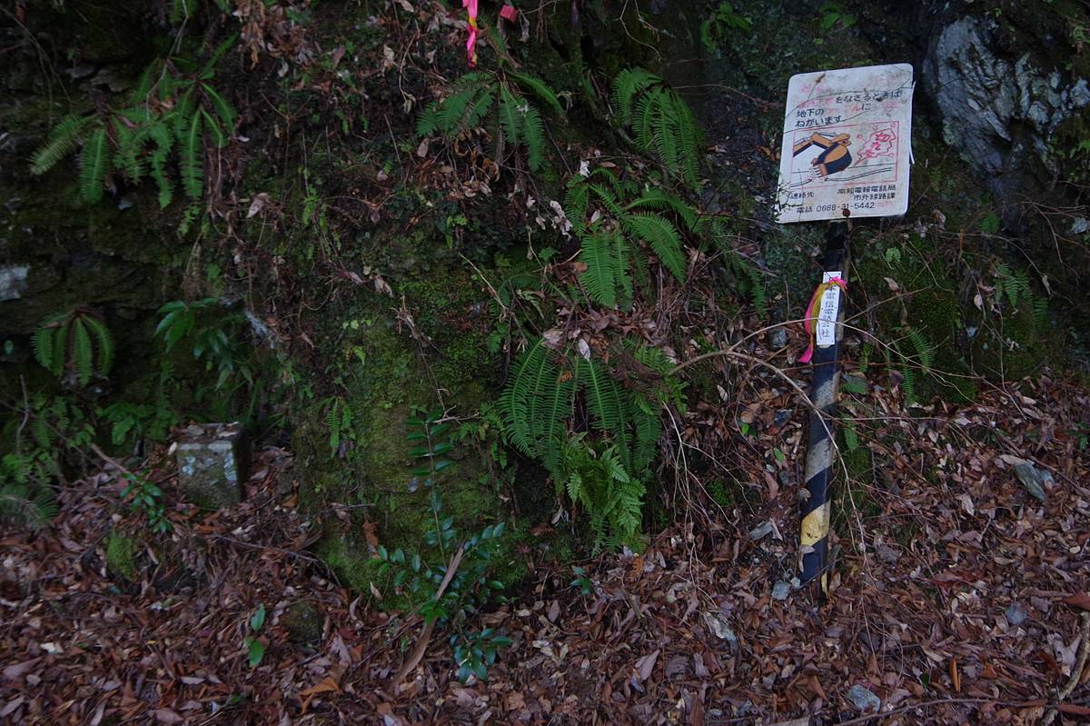 これも全国の(古い)道路でよく見るアイテムで、旧電信電話公社が設置していた地中電話線破損防止の看板だ。
