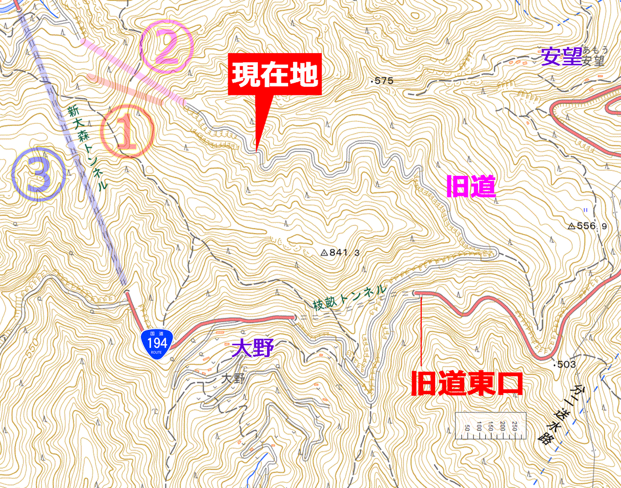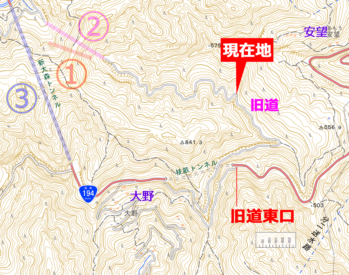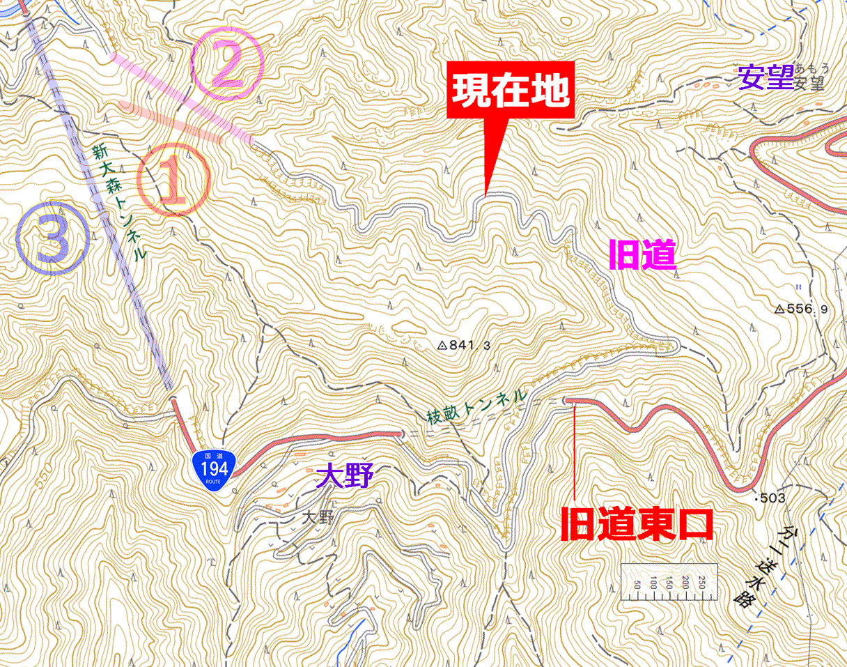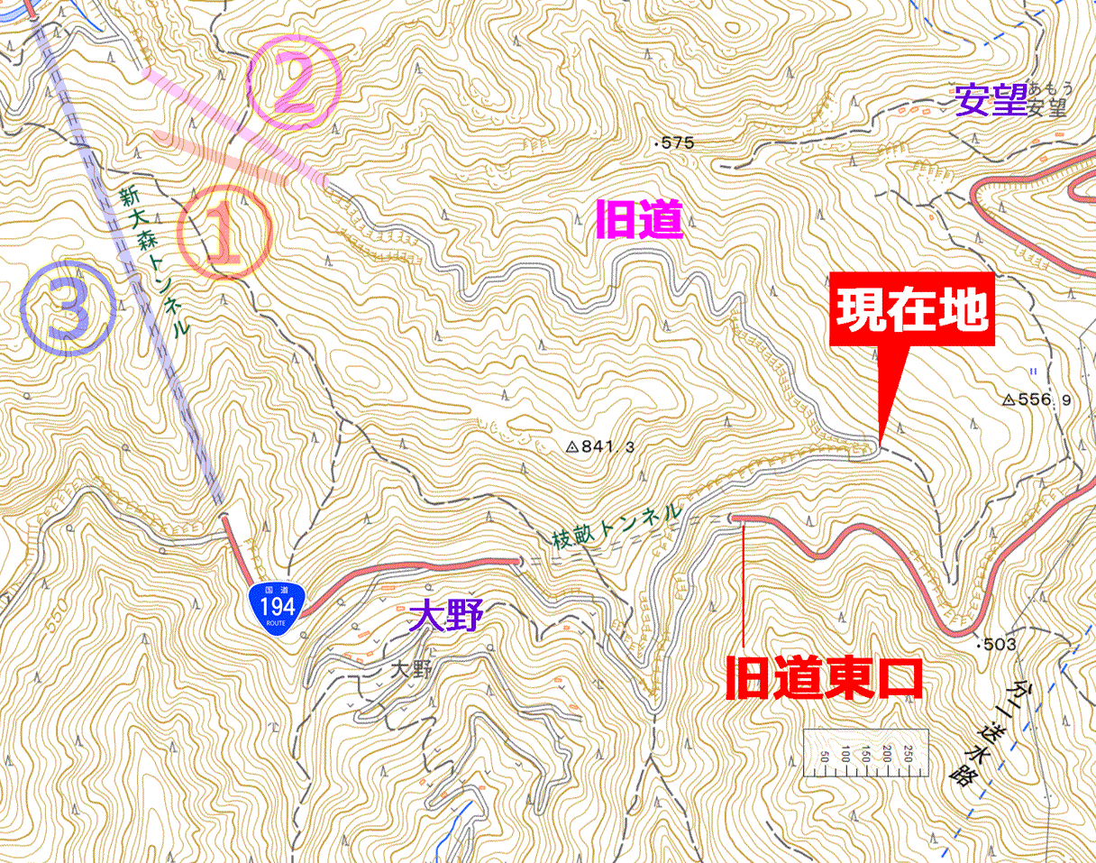 地図を見ると、既に越えるべき旧大森トンネルと近い高さまで達していて、敢えてこれ以上登る必要がなくなっていた。