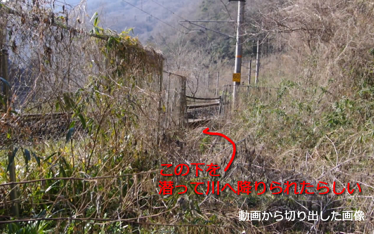 この後段の聞き取りの中で私が「ヤラレタ!」と思ったのは、探索中に歩道の終点と考えて引き返した線路端から、さらに線路を潜って川まで降りる経路が存在したという話である。