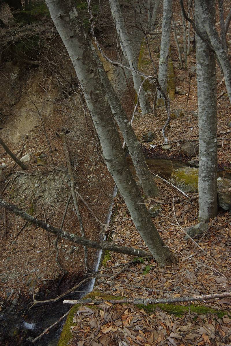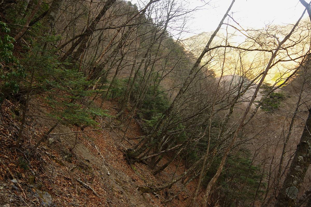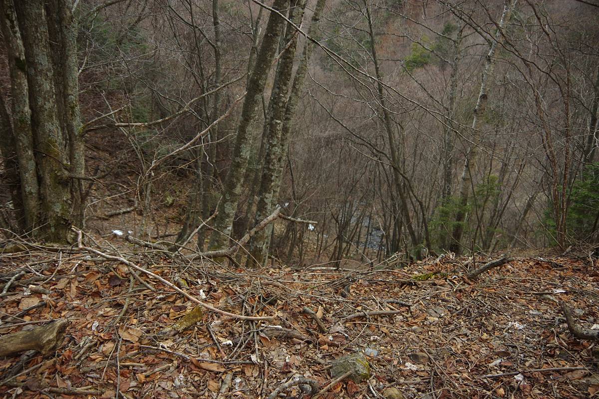 周囲は踏み跡などないガレ場や落葉で潤滑された急斜面ばかりで、どこを下ろうにも気楽ではない。