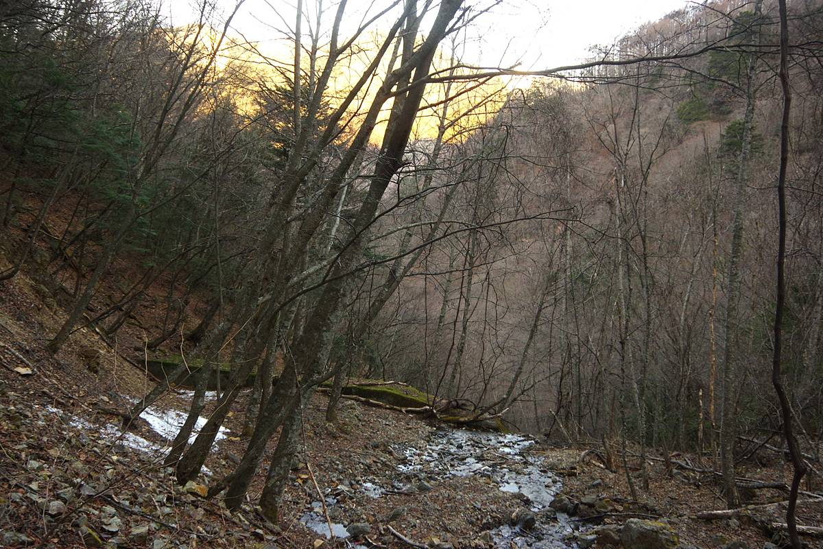 ようやく、当面の下降目標としていた谷底の水際へ辿り着いた。