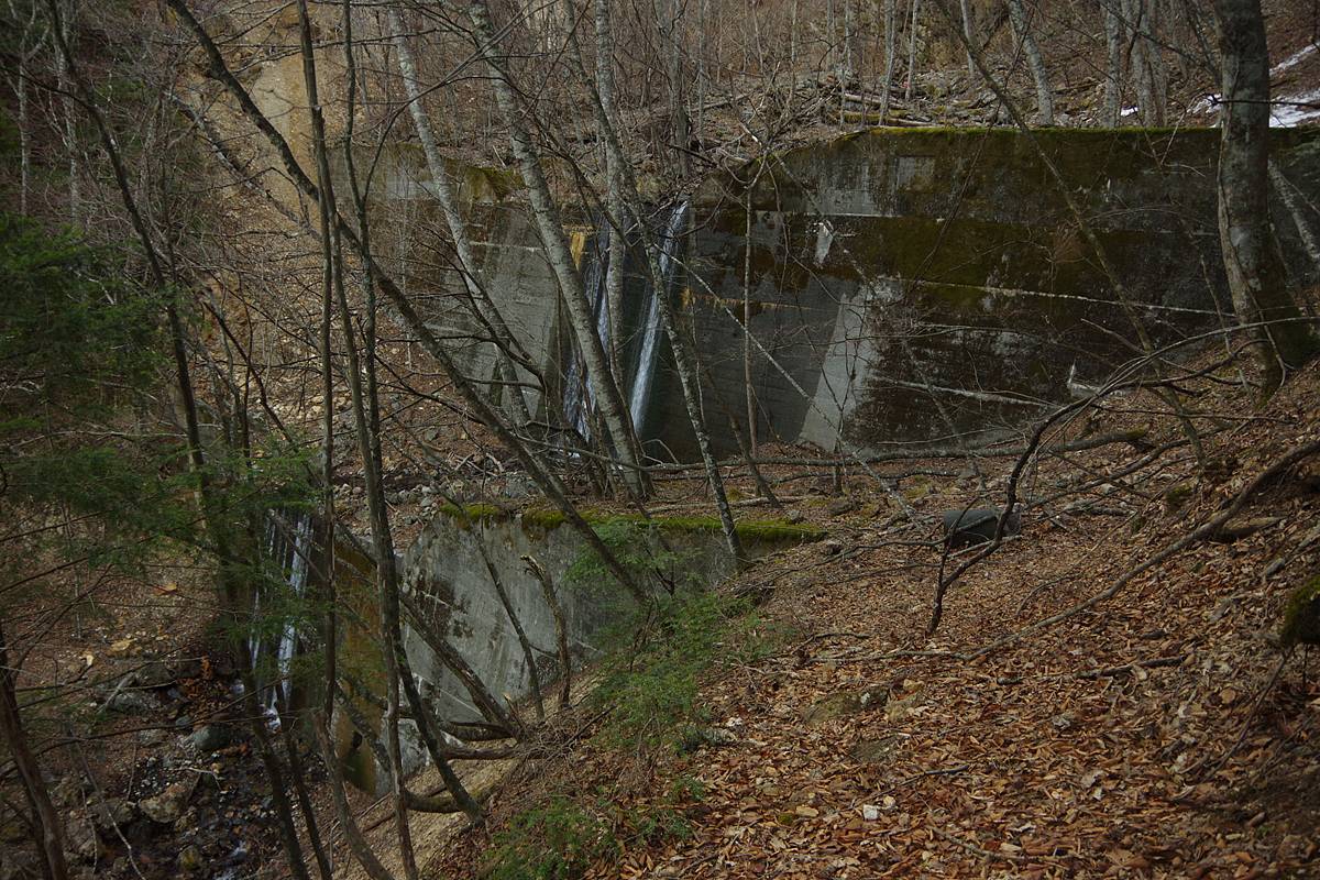 おそらく林道工事が盛んに行われていた時代の構造物ではないかと思うが、間違いなく工事関係者は入っている。