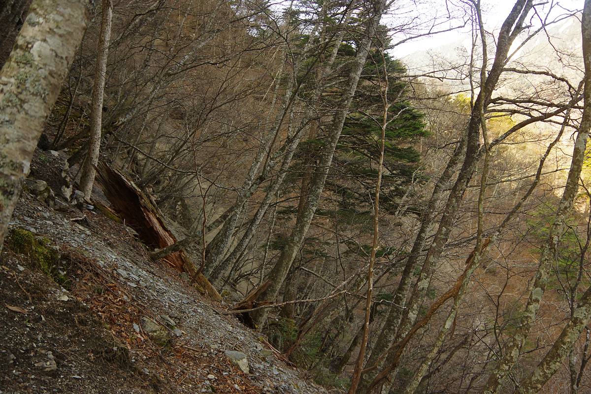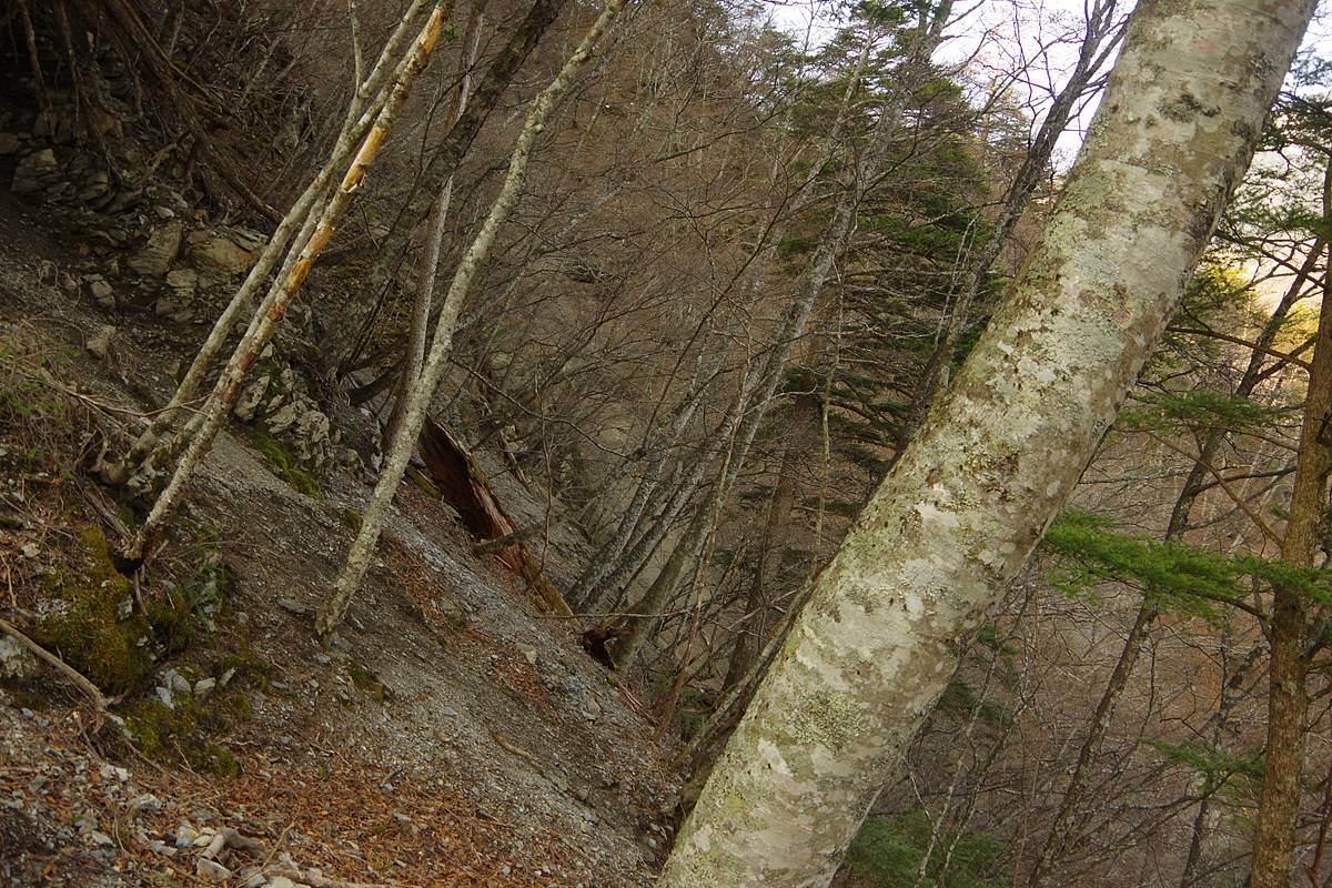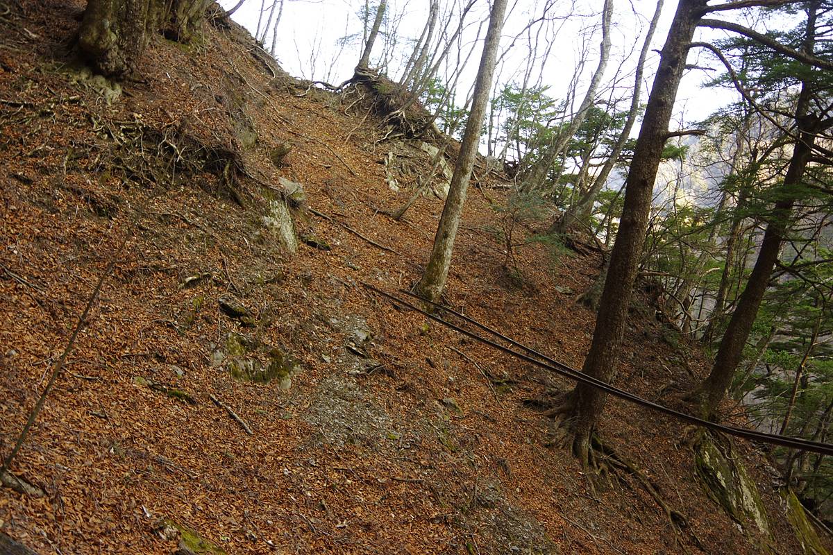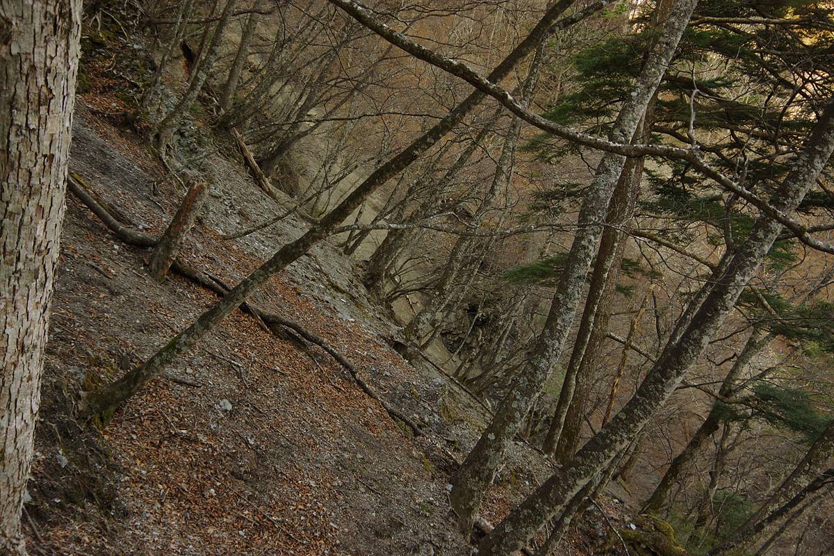 落葉の下は、大抵どこもかしこも硬く締まった礫斜面で、これが滑りまくる。