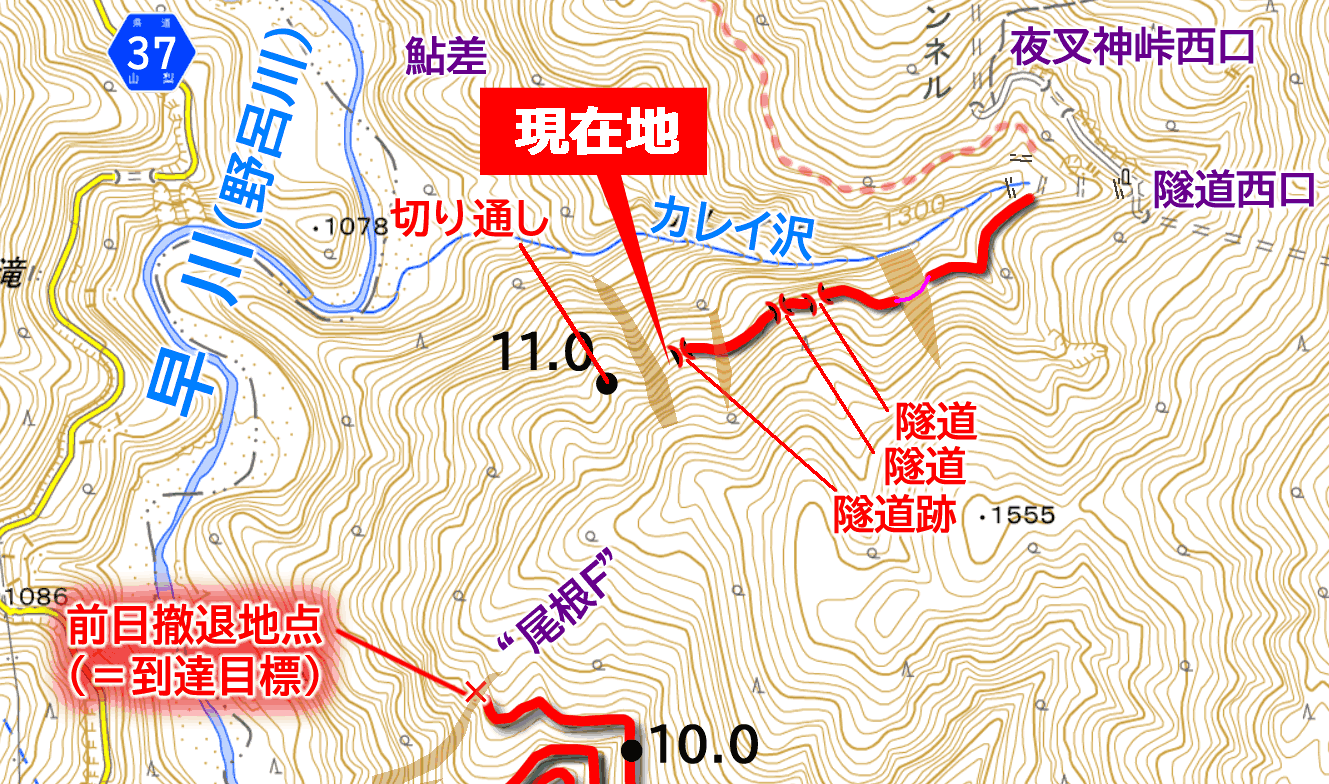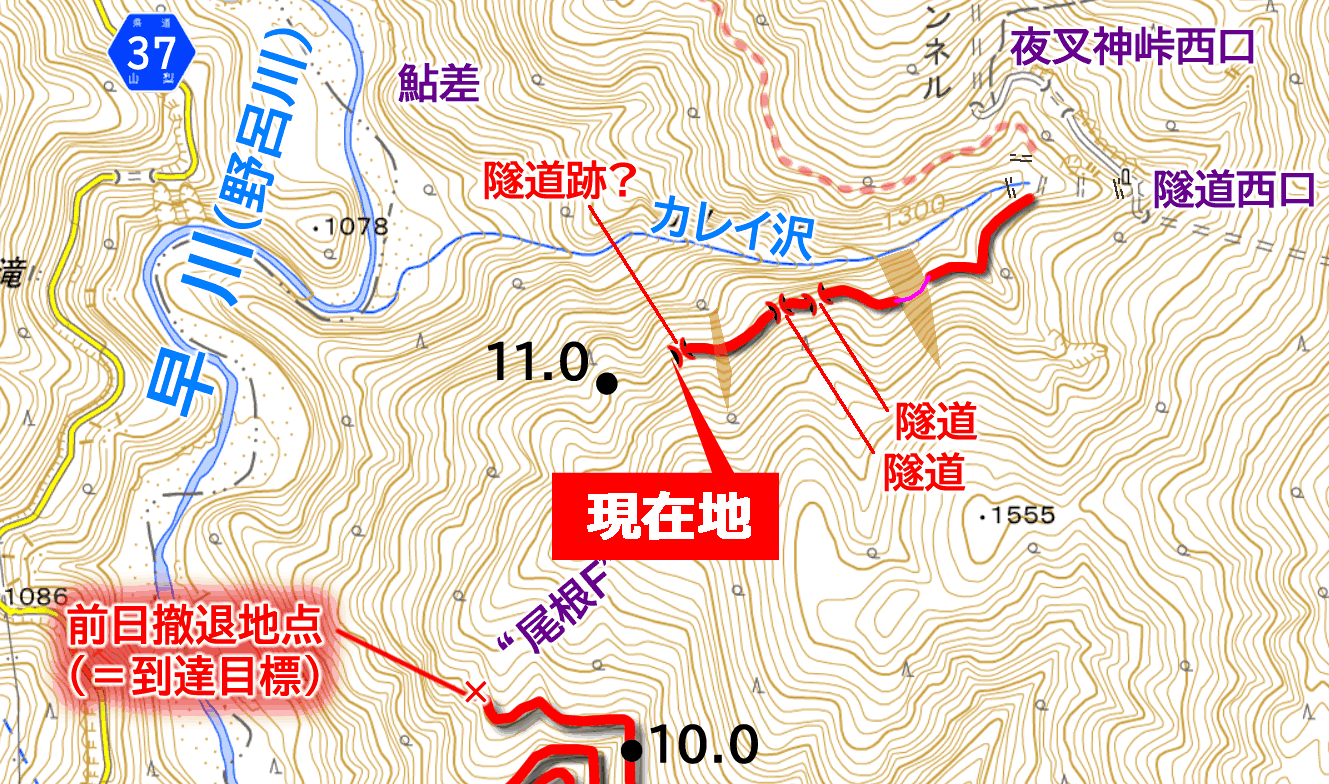 このとき私は、昨日の撤退地点まで推定800mの位置にいた。