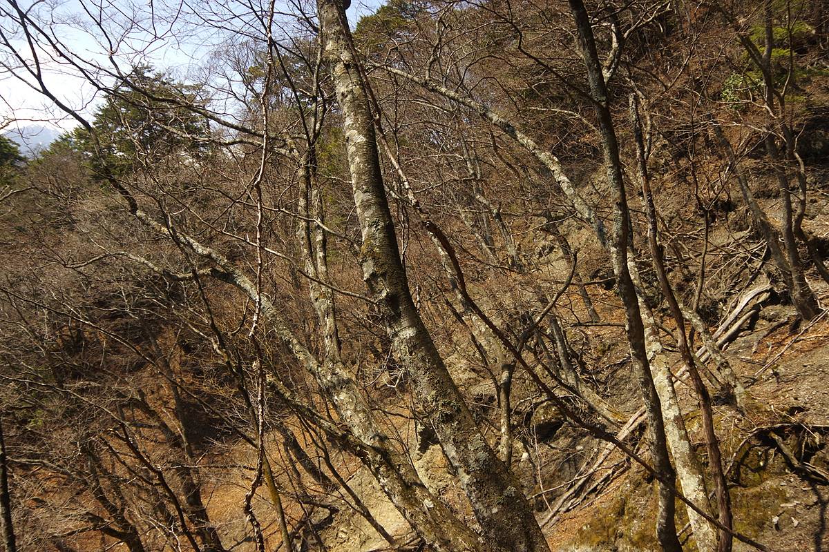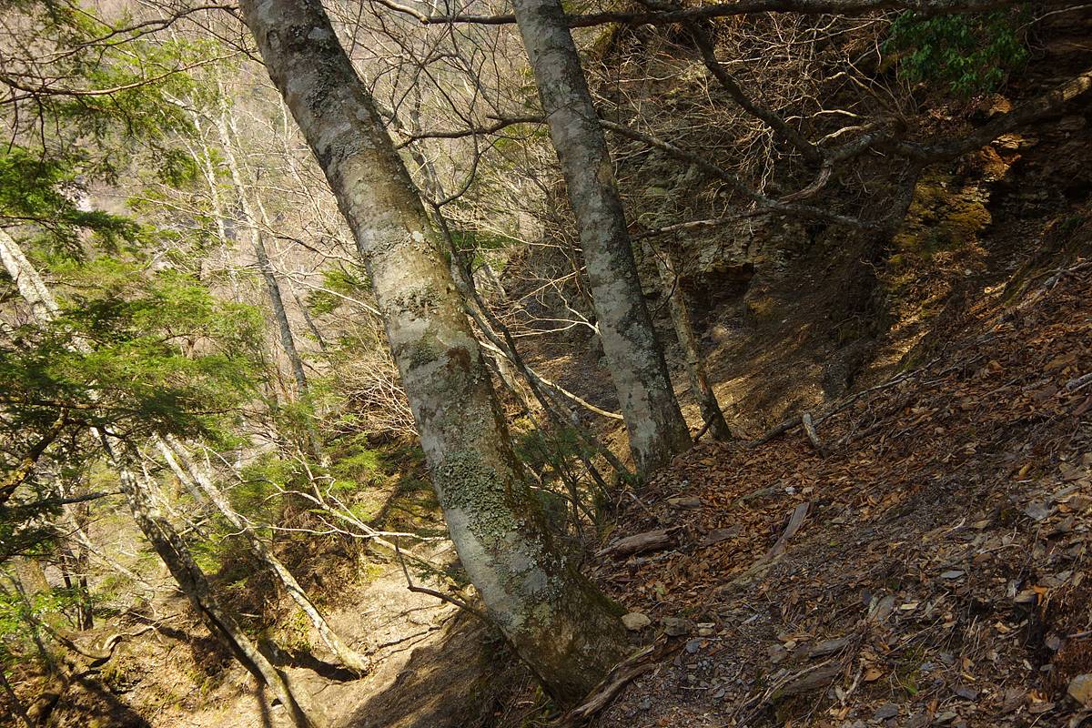 尾根を乗り越え、アザミ沢側の斜面にある路盤へ入った。