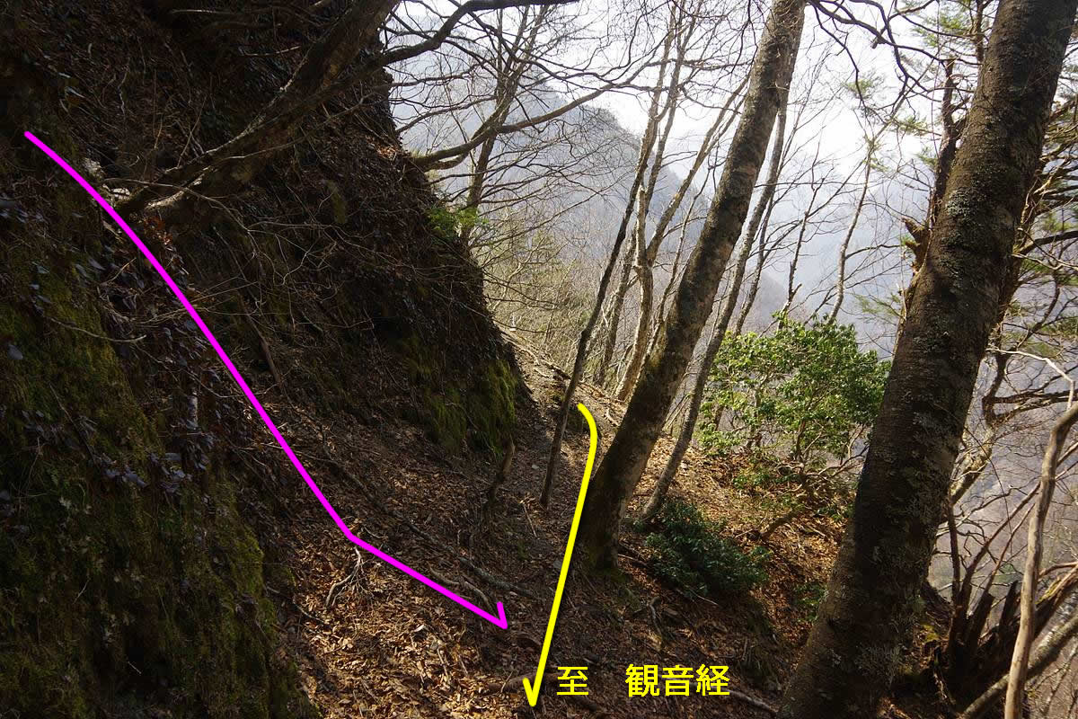 尾根の下に取付いた道は、そのまま先端への冗長なトラバースを選択したようであった。