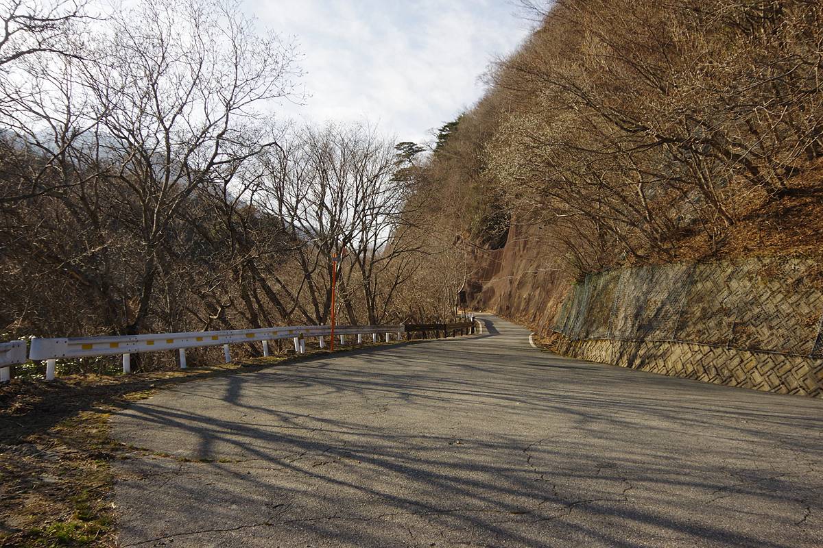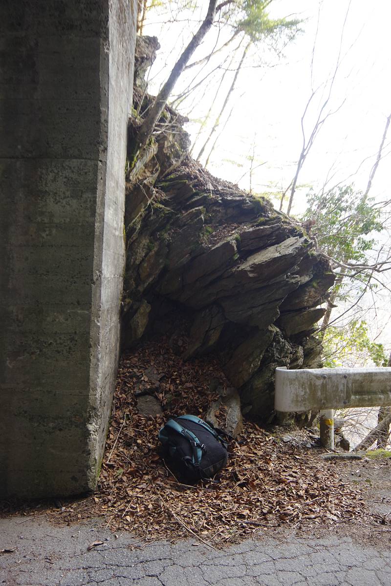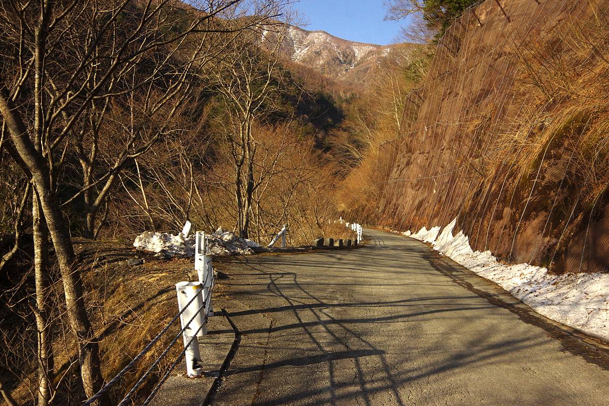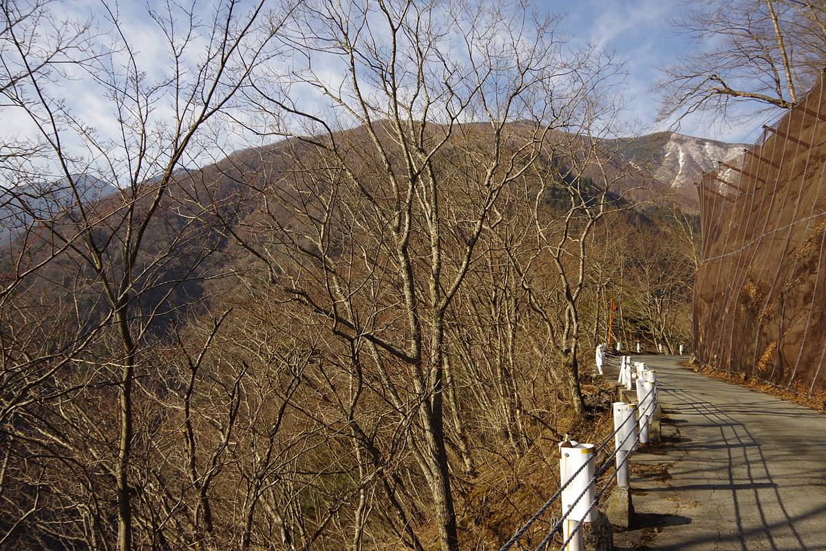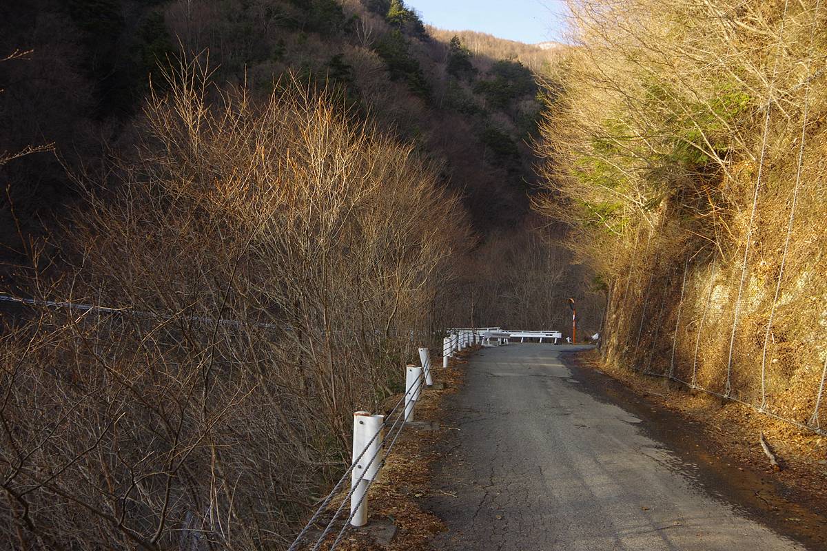 落差400mを下ってから向こう側の3000mの頂上へ登るという、敢えて車道の助けを拒みたい人向きハードコースだが、今回の2日間の探索の進行パターンによっては、県道へショートカットする帰路として歩く可能性があった道だ。結局使わなかった。