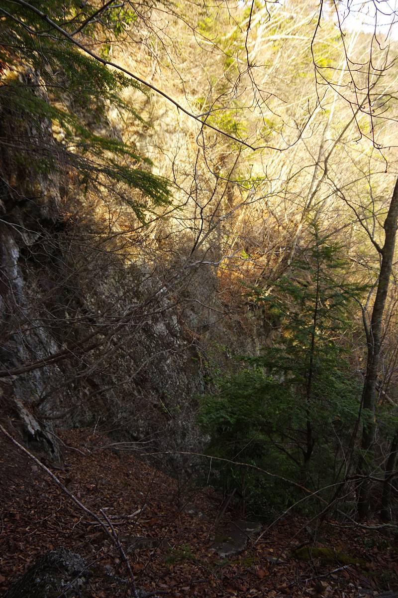 その落差は2mもないが、恨めしいほど垂直な段差である。単純に徒手空拳では登りにくいのである。