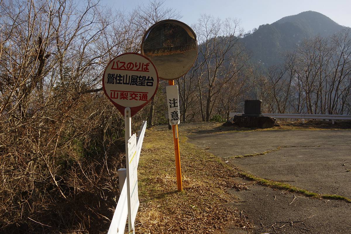 この鷲ノ住山展望台には山梨交通の同名のバス停がある。