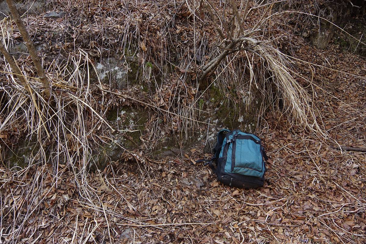 今さらだが、この祠の下でついに、メインの道具入れである肩のザックをデポした。