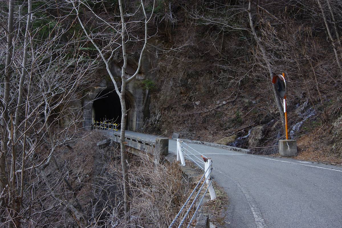 林道のトンネルの外側に巻き道を作る余地もなければ、廃隧道がありそうな感じもしない。