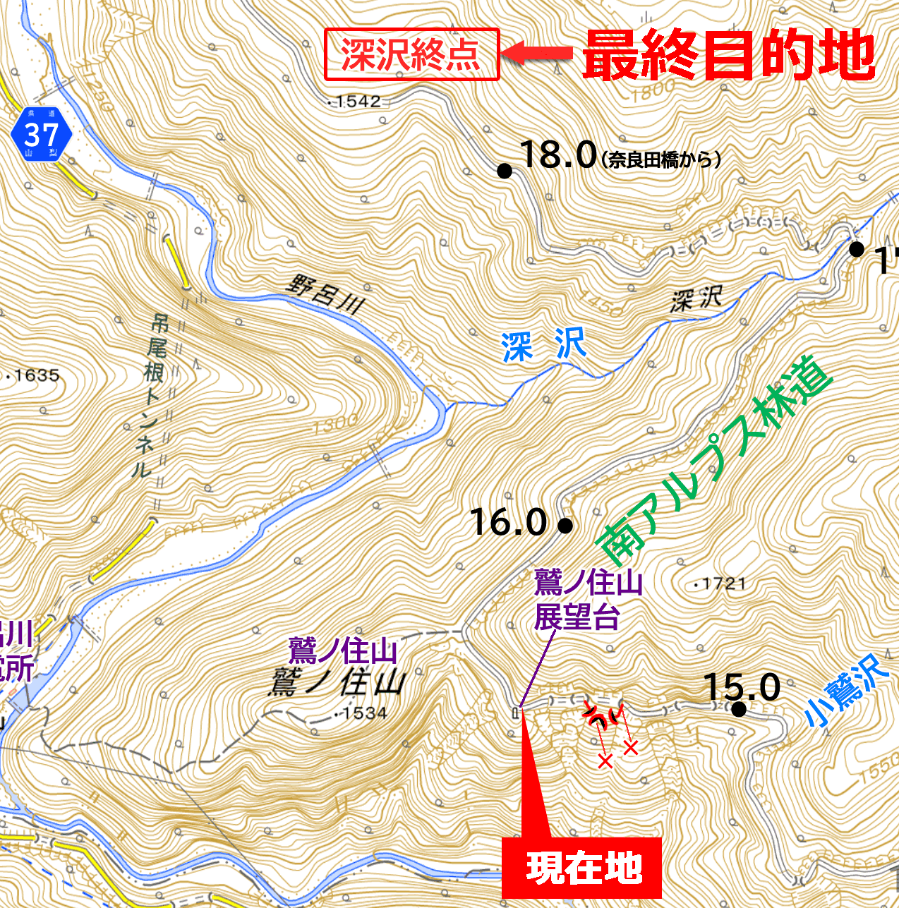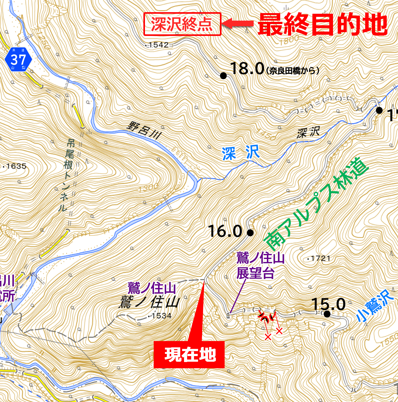 深沢尾根 軌道終点 まで (推定)2.7km