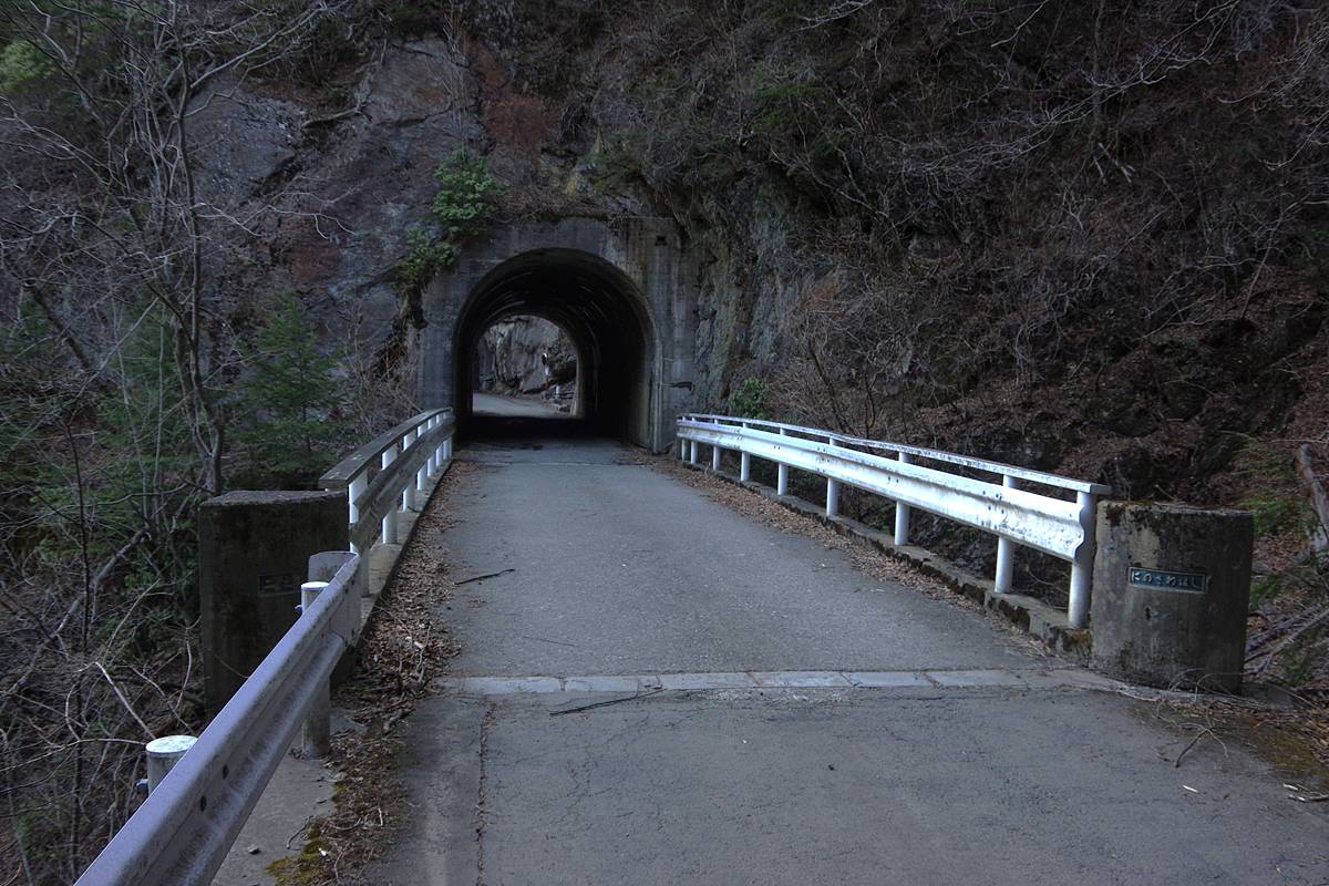 3本目のトンネル「第12号隧道」と、その直前に架かる「二之沢橋」。