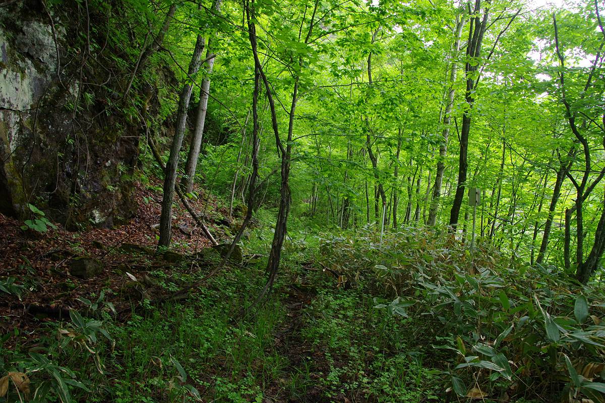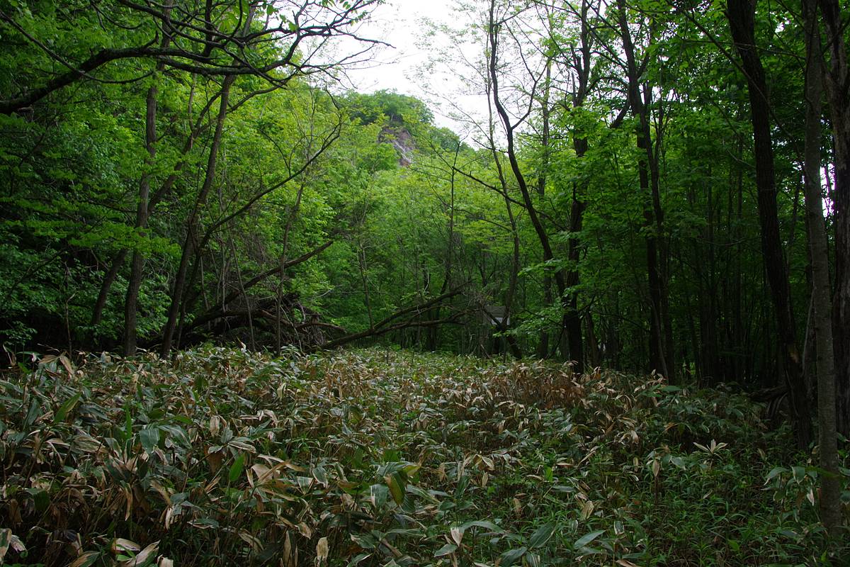 岩がちな地形になったせいか、笹藪は明らかに薄くなってきた。腐葉土の路面が見えるようになった。