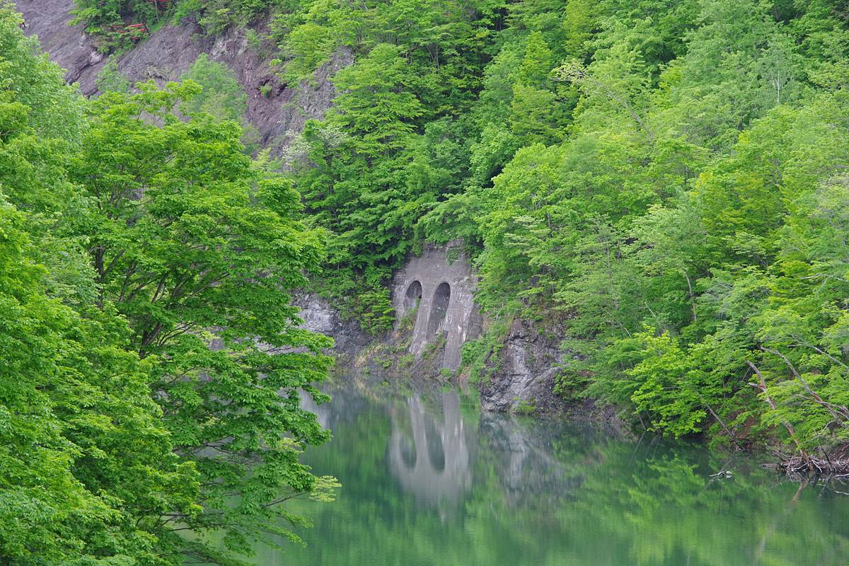 ここで一度、この場所の交通路としての歴史を簡単に復習しておくと、まずは明治33(1900)年から昭和5(1930)年まで根室本線であった。続いて、(『大鑑』に記録されている金山隧道の竣功年からおそらく)昭和8(1933)年に道路転用され、昭和28(1953)年には国道237号となって、(おそらく)昭和44(1969)年に現道に切り替えられるまで利用されていたのである。