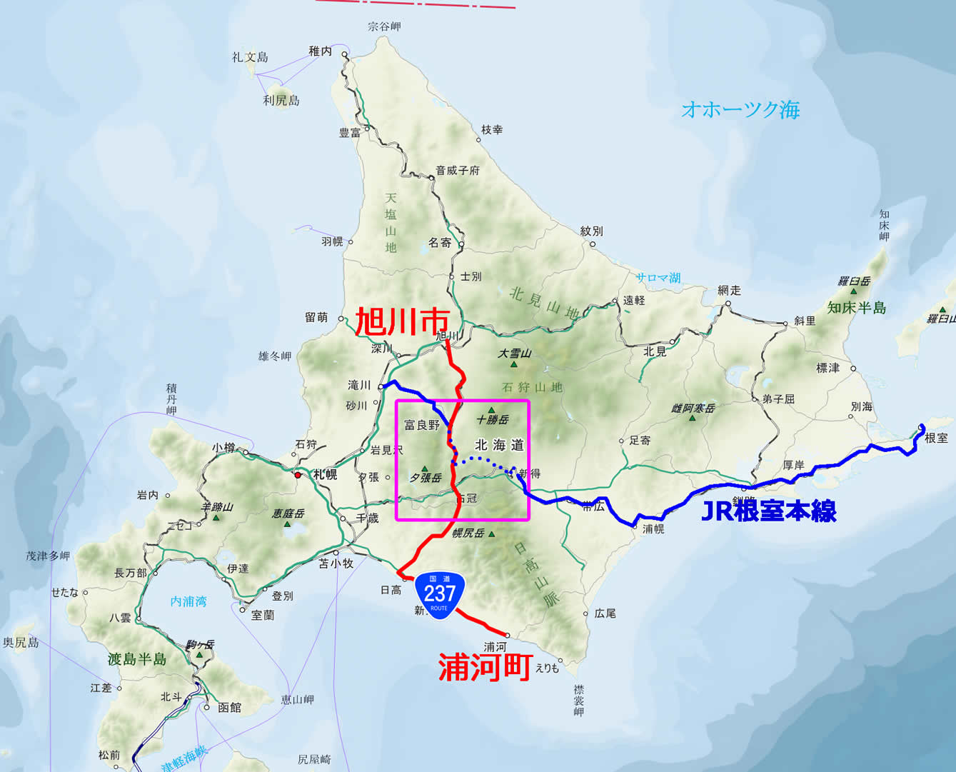 国道237号は旭川市と浦河町を結ぶ総延長約260km(実延長約161km)の一般国道だ。石狩山地と夕張山地に挟まれた富良野盆地を南北に貫いて、太平洋岸と内陸部を結ぶ重要な路線だが、この国道の旧道には特異な経歴を有する1本のトンネルが存在した。