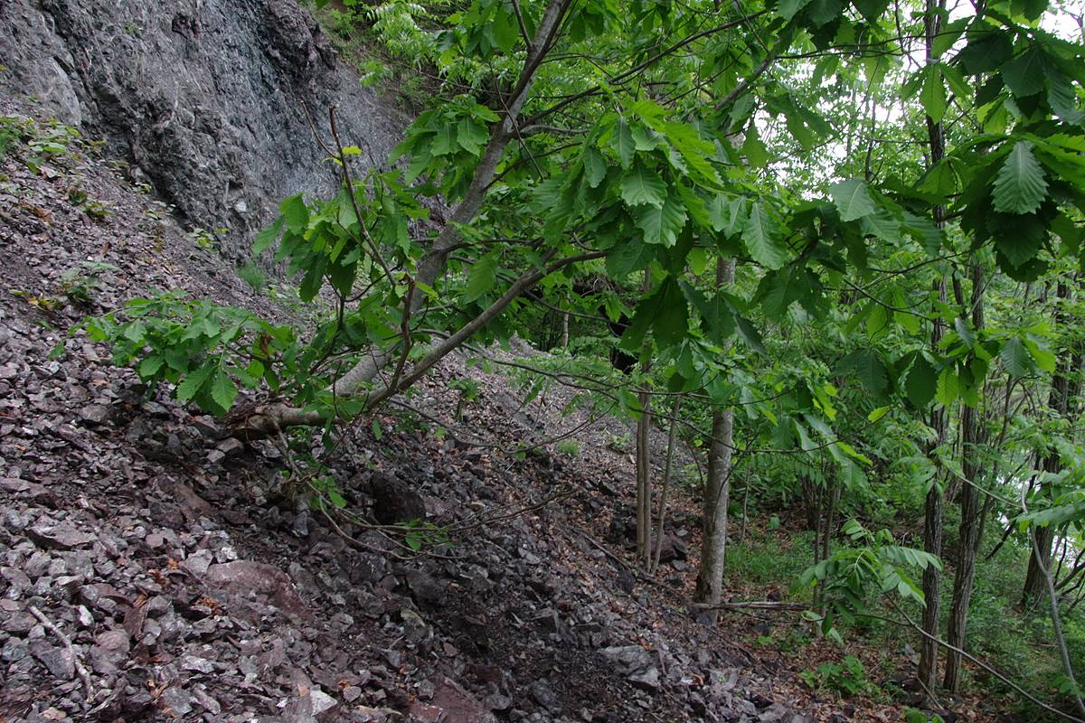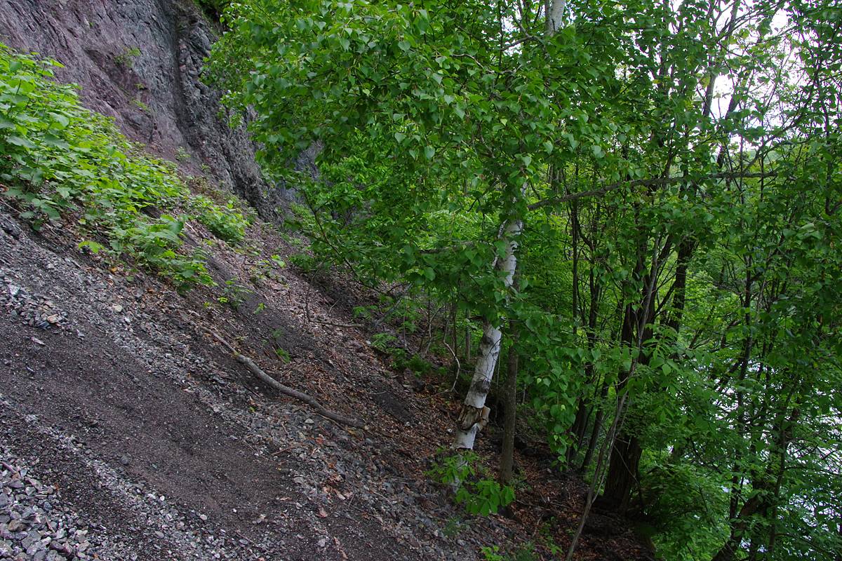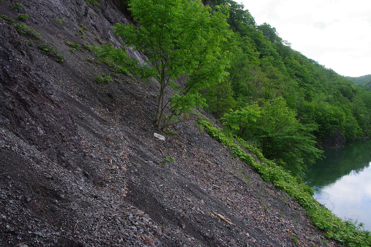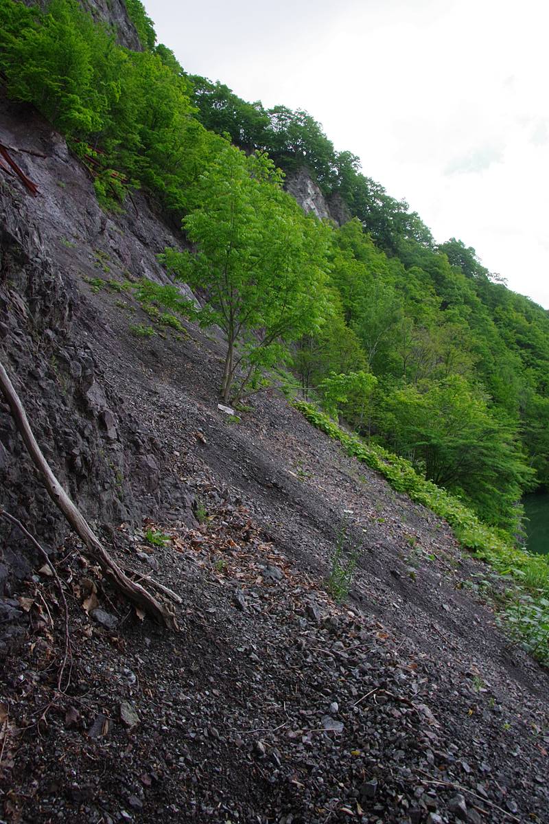 崖錐斜面が小さくなり、樹木が路上に現われだした。