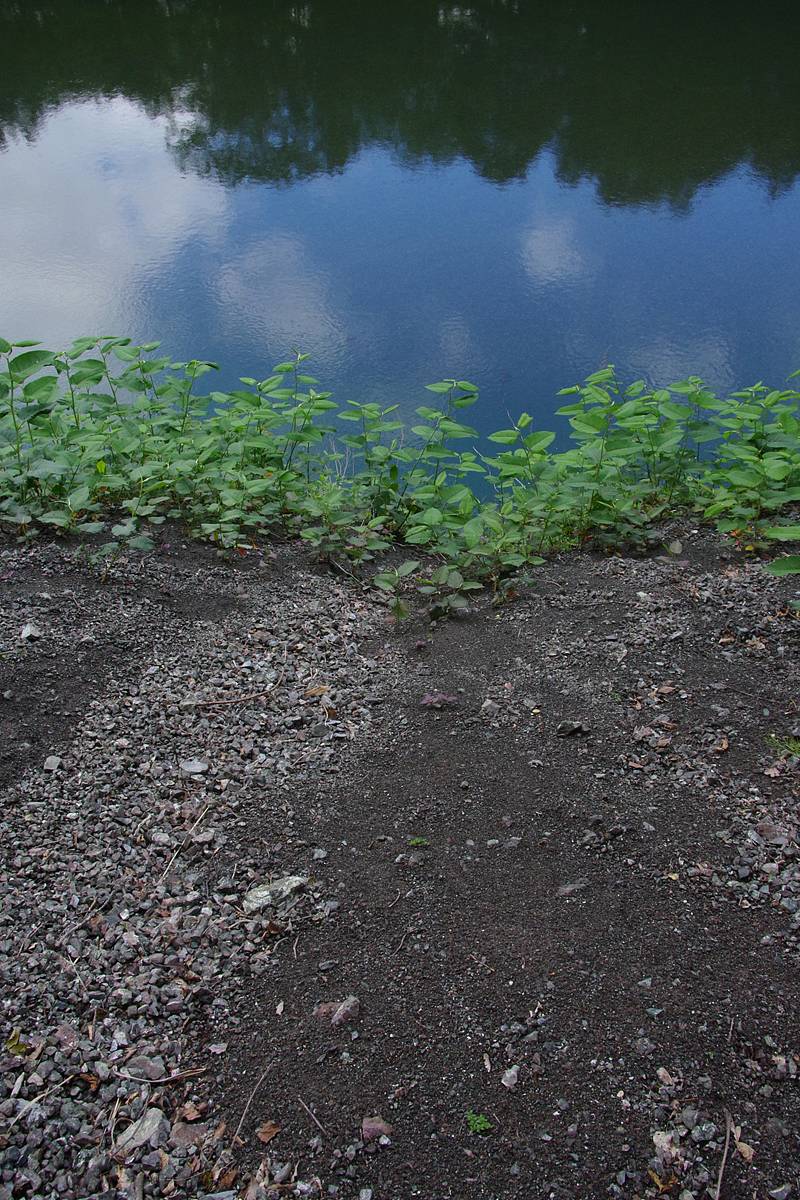 この斜面で一番の怖さを作っているのが、路肩の下に切れ落ちている垂直の擁壁と、底知れない水面の存在だ。
