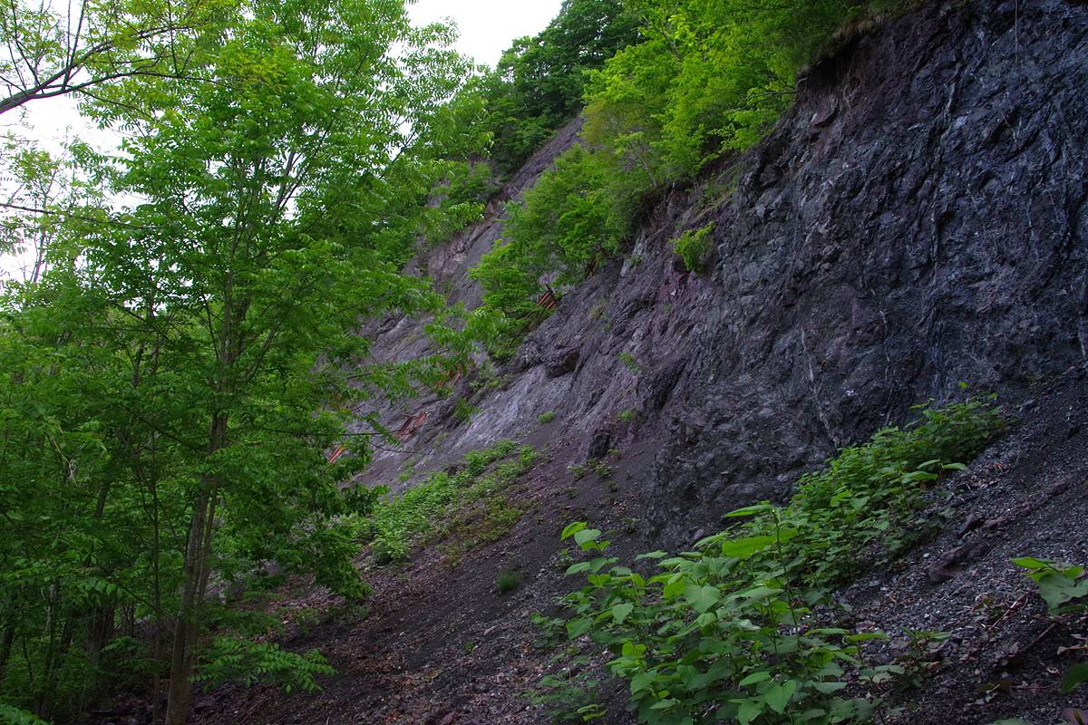 印象として、やはり誌面の光景以上に崩れているように思ったし、また当時から継続して崩れ続けていることも、崩壊斜面がほとんど地山化&緑化していないことから窺い知れた。