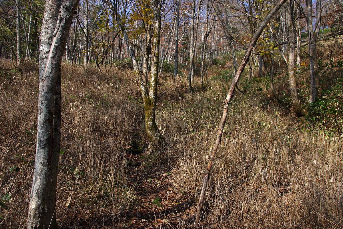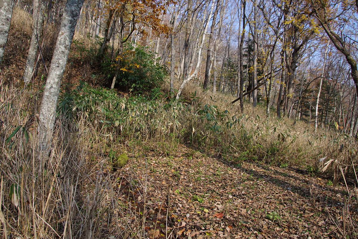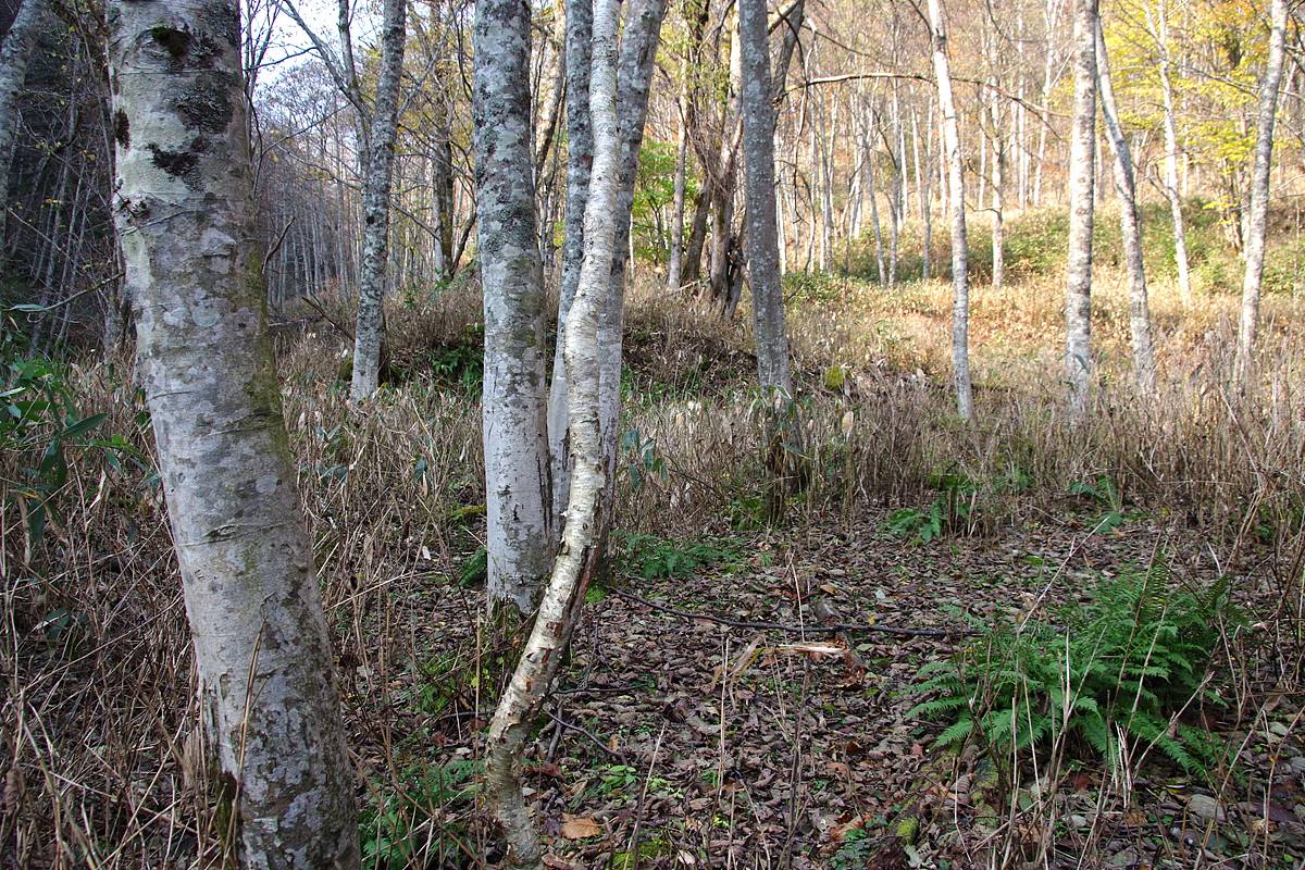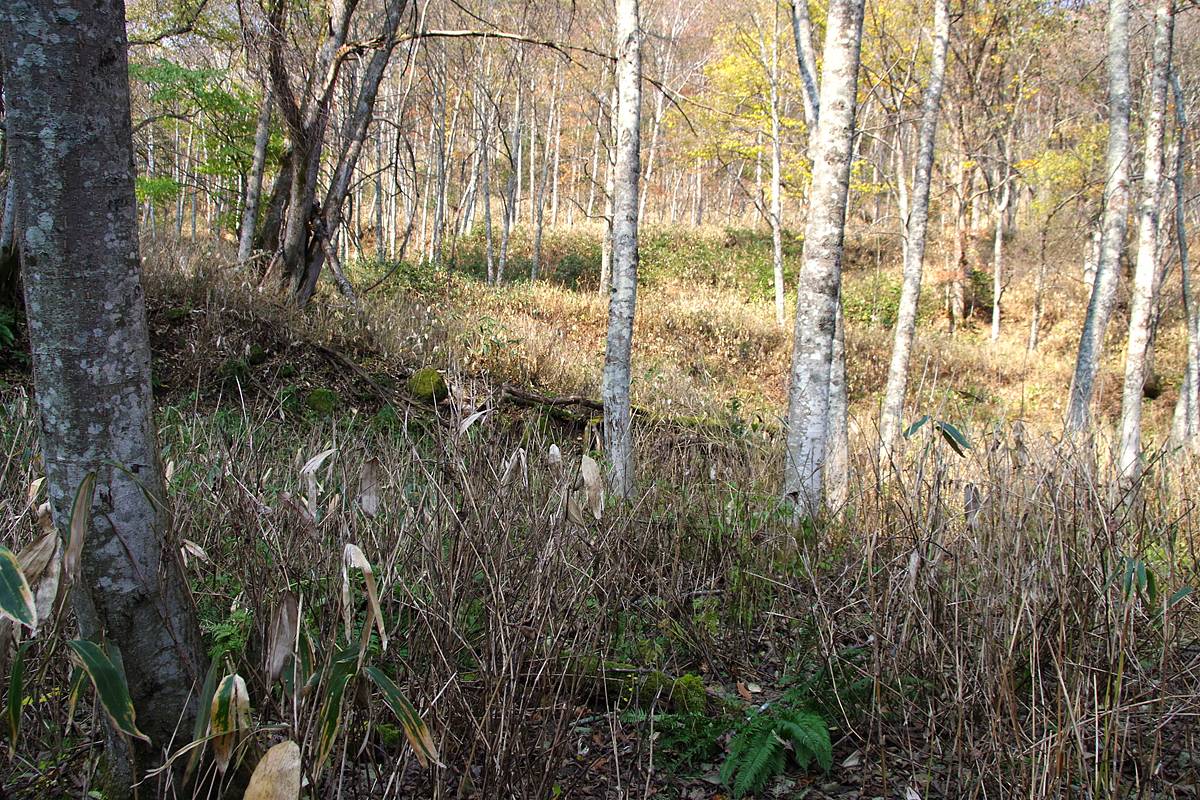 この辺りも本来は猛烈な笹原であったと思われるが、一斉枯死のおかげで奇跡的に見通しがあり、かつ歩き易い。