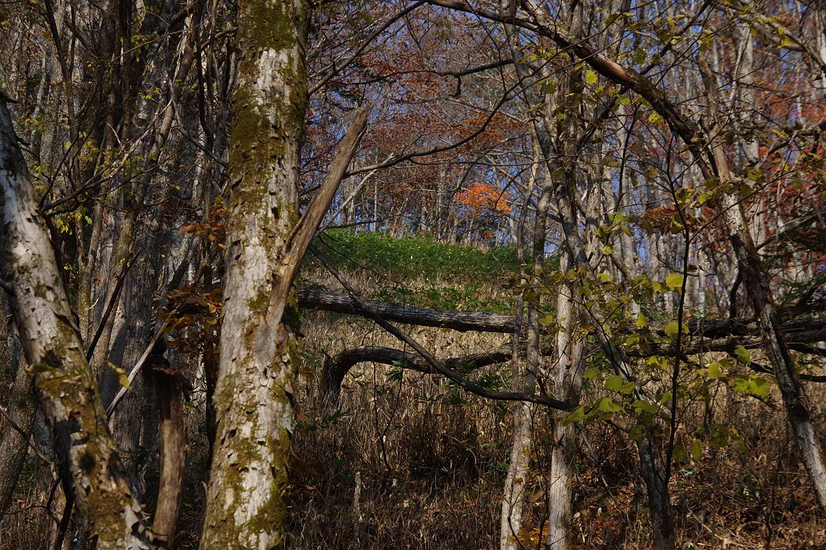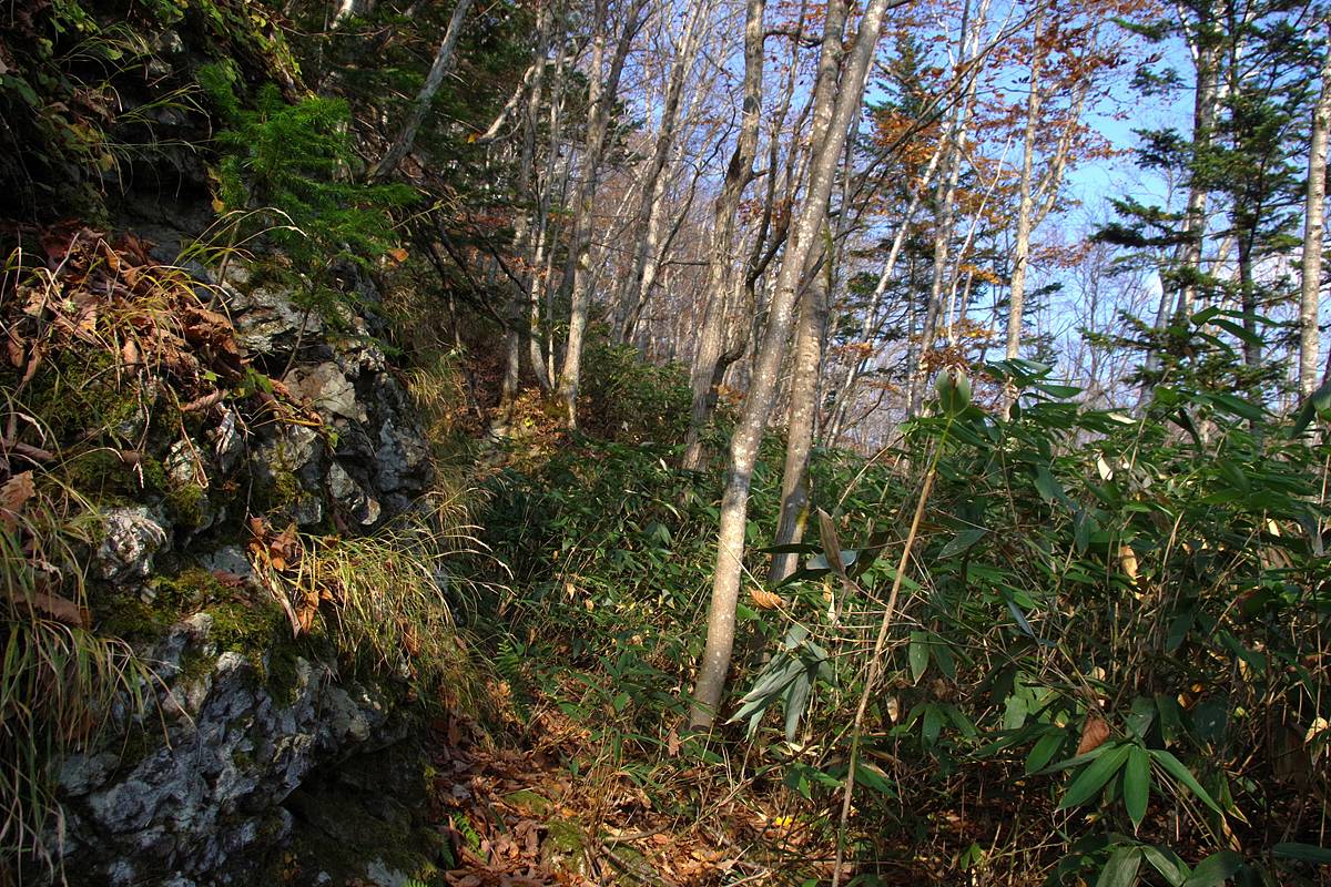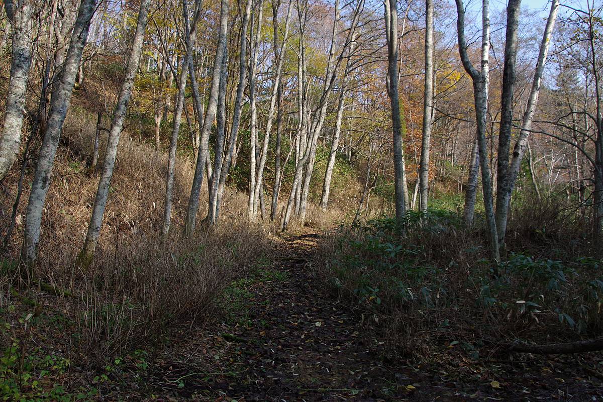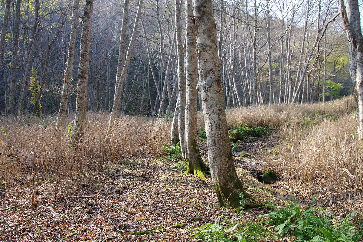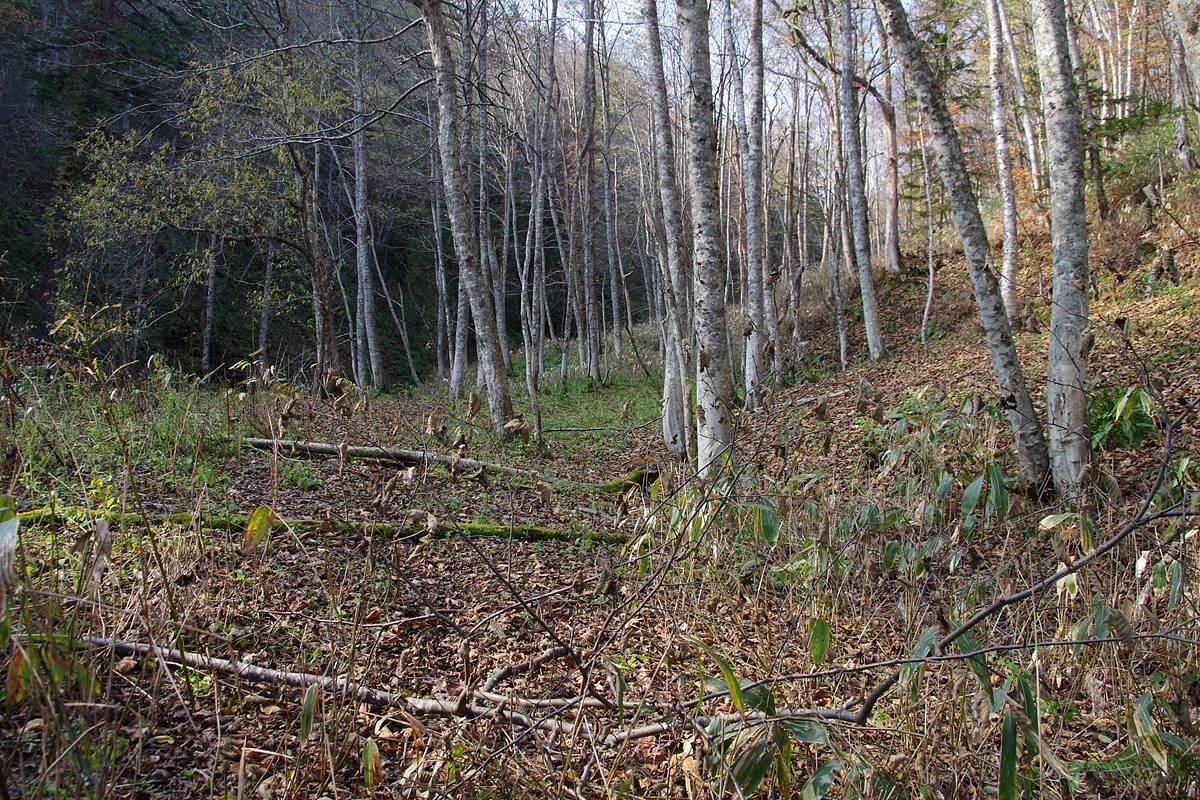 この辺りも本来は猛烈な笹原であったと思われるが、一斉枯死のおかげで奇跡的に見通しがあり、かつ歩き易い。
