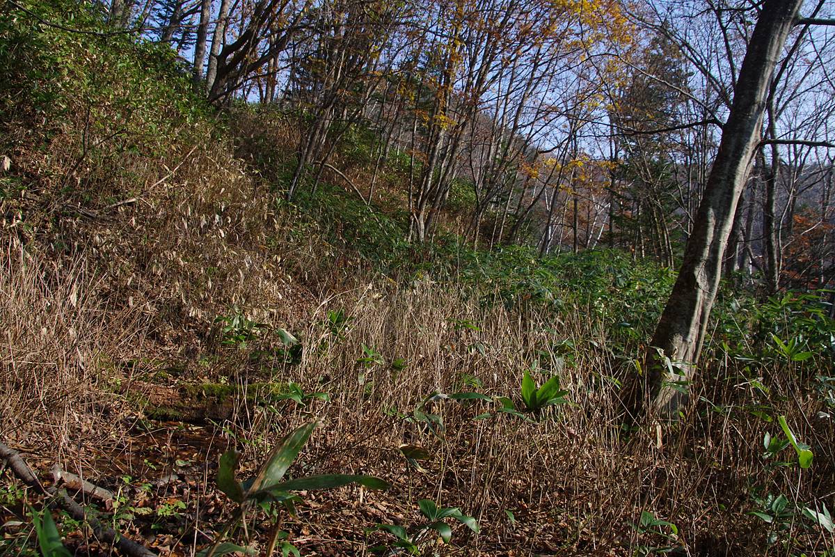 ありがたくない元気なササのエリアを1〜2分ばかりガサゴソしていくと……