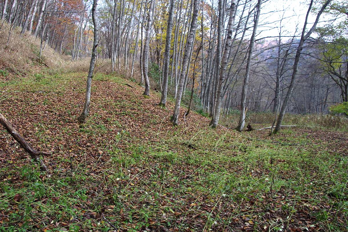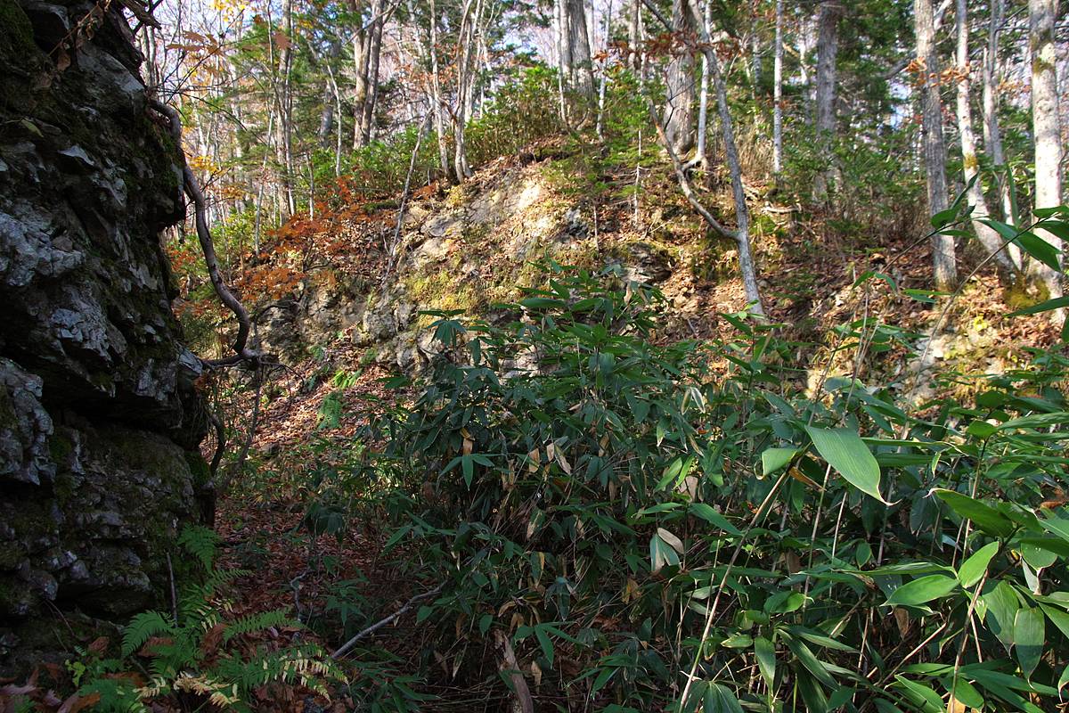 今度は切り立つ岩場はないが、やはり斜面を削りとった掘り割りにはなっている。