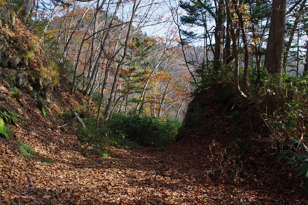 岩場に取り囲まれているせいか、掘り割り内の路面には笹も侵入しておらず、道形が完全に露見しているのも嬉しい。
