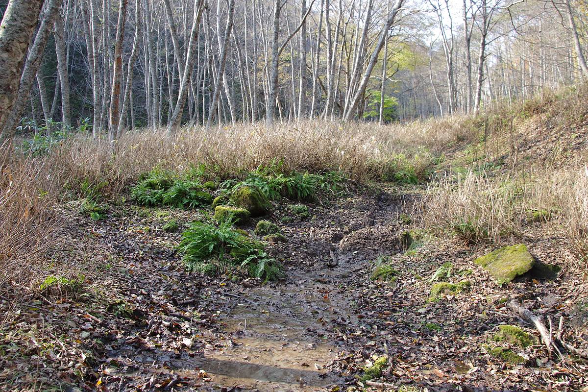 ヌタ場と言えば、内地ではまずイノシシによるものが連想されるが、ここではおそらくエゾシカによるものだろう。