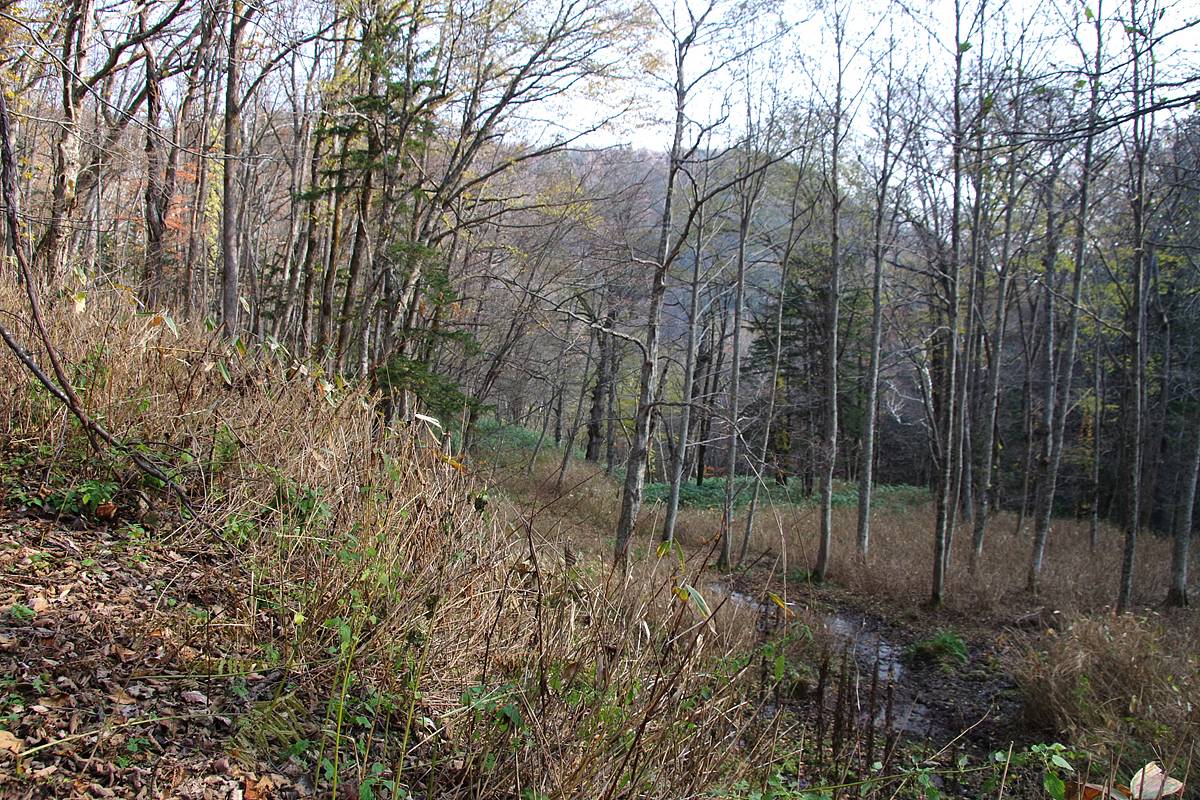 さらに進むと、道は谷底のやや広い堆積地に入った。