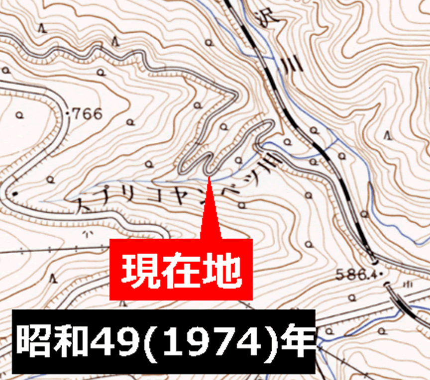 先ほども書いたとおり、大正期の地形図にはこの切り返しは存在しておらず、より短距離で急勾配のルートを採っていた。