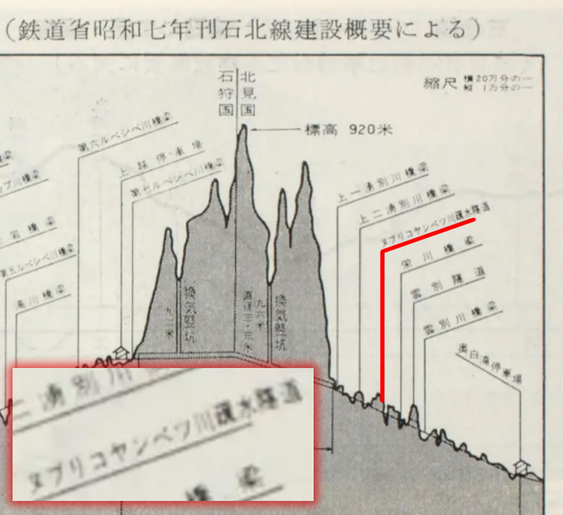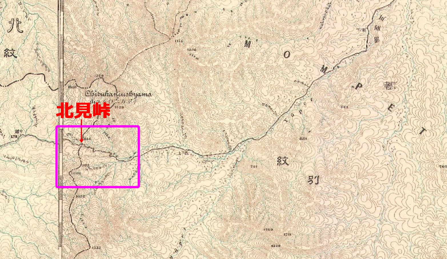 これは小縮尺の地勢図を見ると分かりやすいが、北見峠がある位置は、北海道の東西を分ける巨大な分水嶺の中で、北見山地と石狩山地の接点にあたり、標高1000mを大きく割り込む貴重な低地になっている。