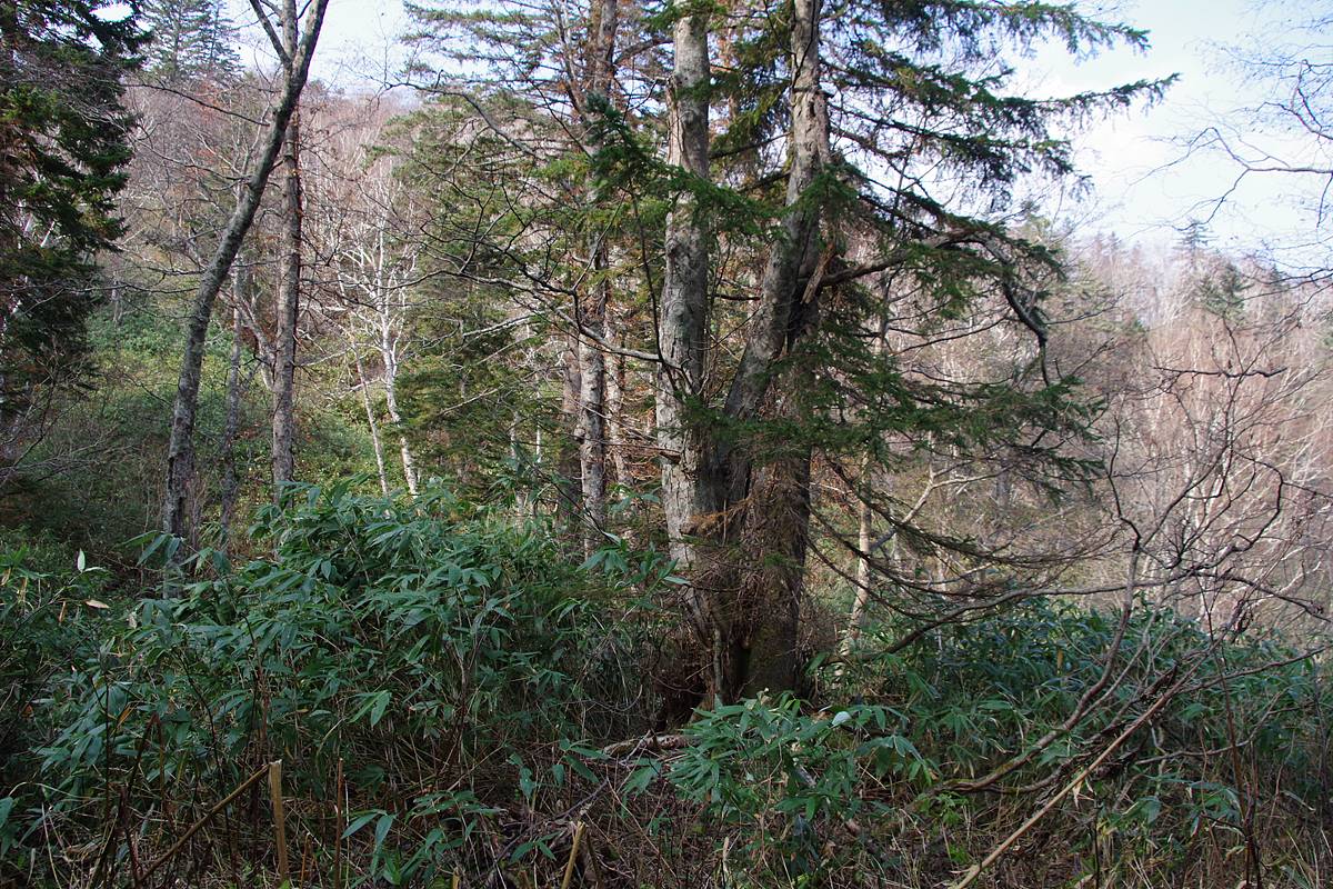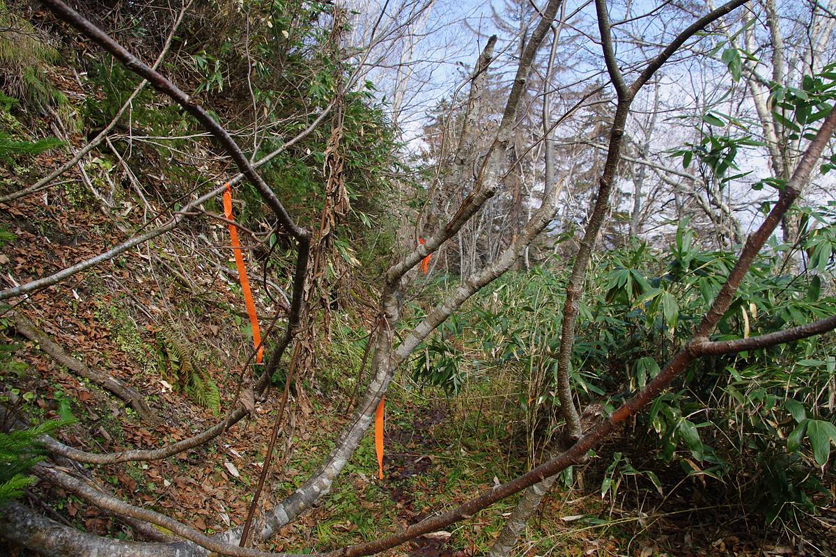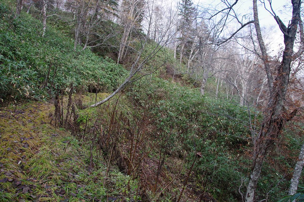 笹の藪も所々にはあるが、全体的に低背で、密度も低く、かつ枯れているものが大半だった。