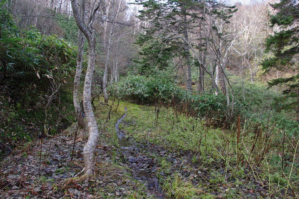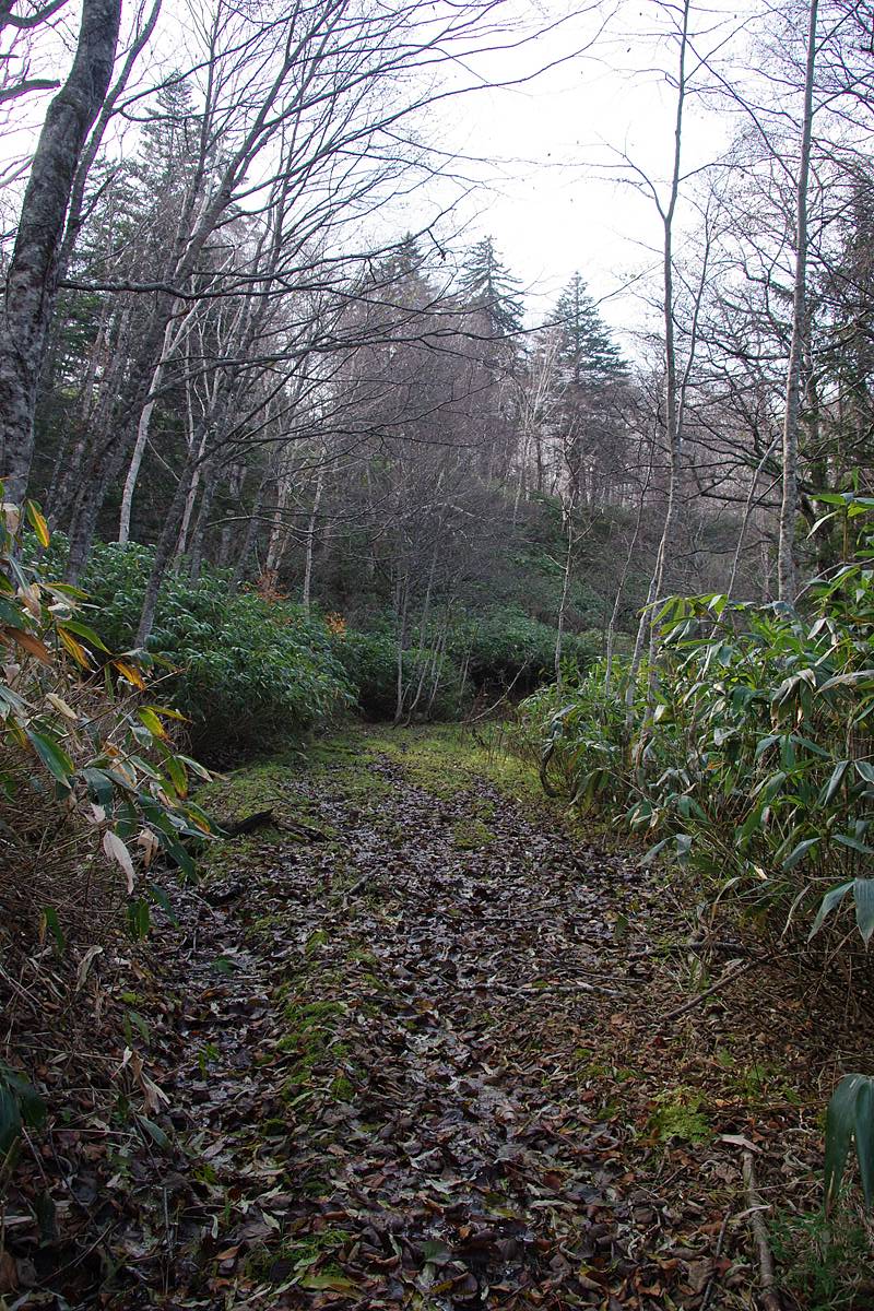 これで完全にスプリコヤンベツ川を離れ、道は次なる峠よりの使者、右ノ沢川に面する斜面に入っていく。