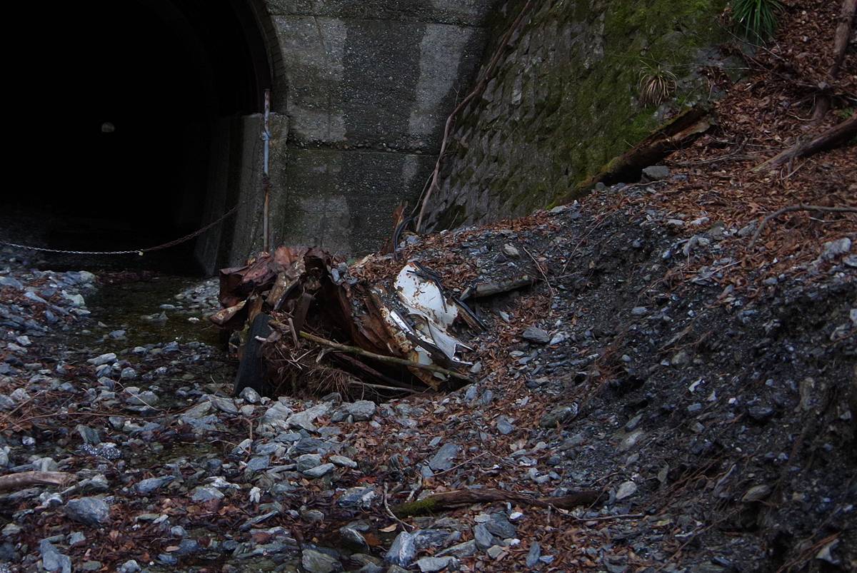 旧トンネルの東口に降り注いでいる【大量の瓦礫】