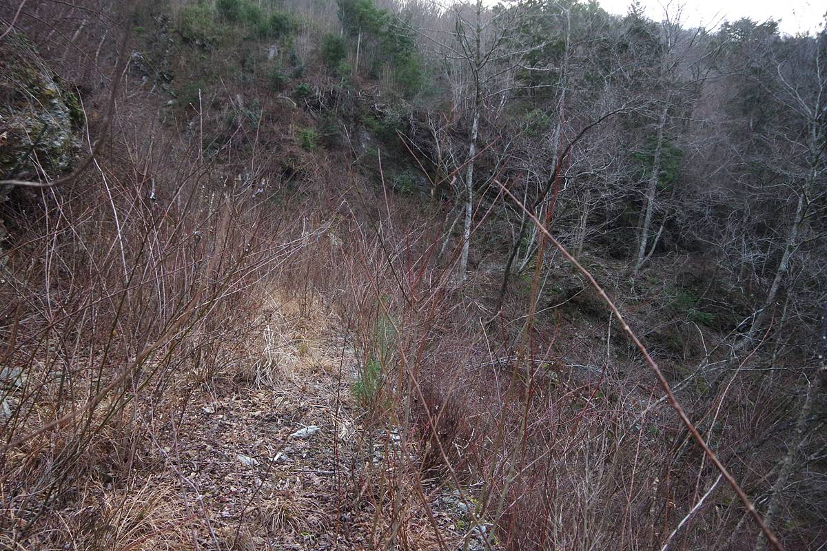 前の写真の中ほどにあるカーブの地点だったが、藪のせいでこんなに近づくまで気付かなかった。、