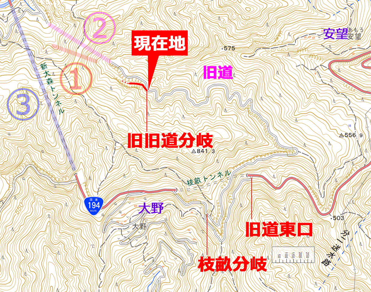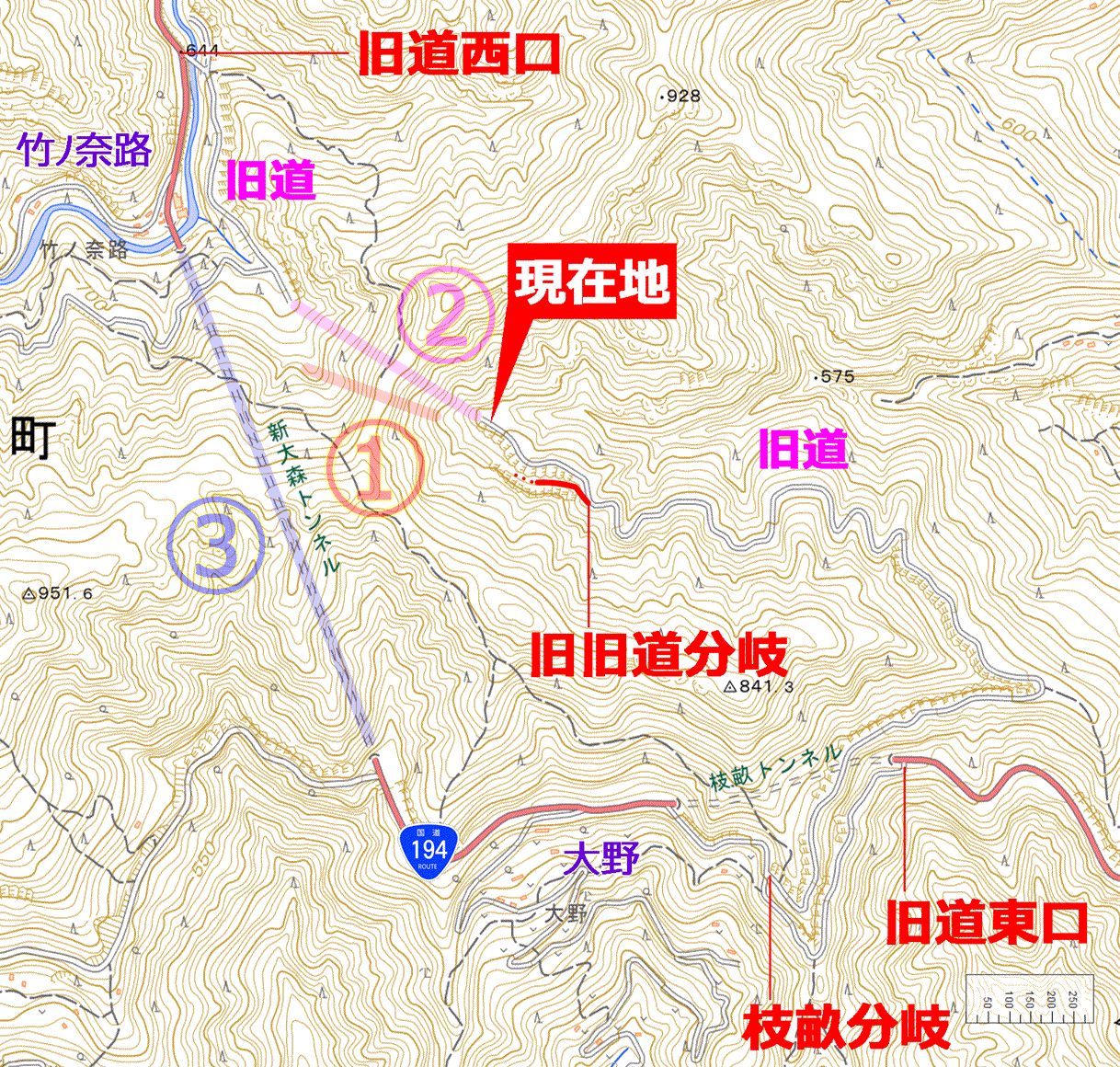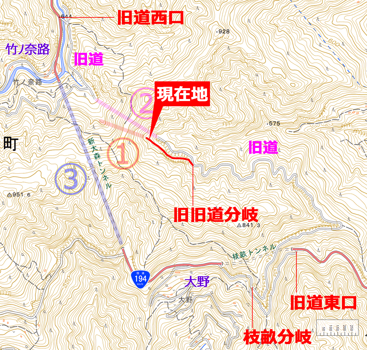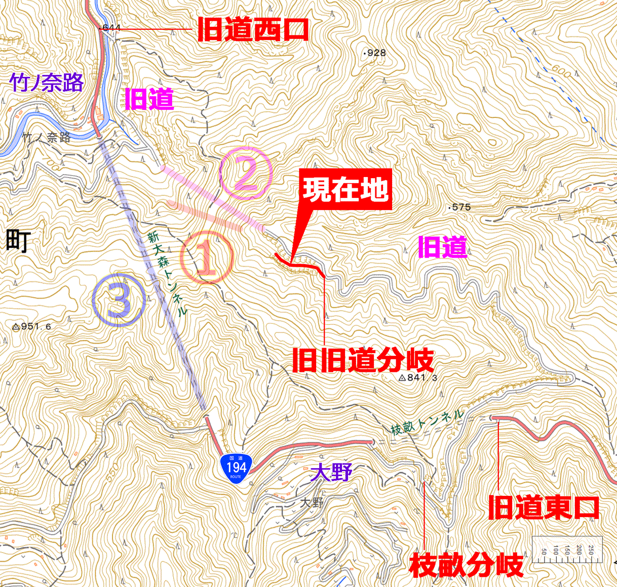 地図を見ると、既に越えるべき旧大森トンネルと近い高さまで達していて、敢えてこれ以上登る必要がなくなっていた。