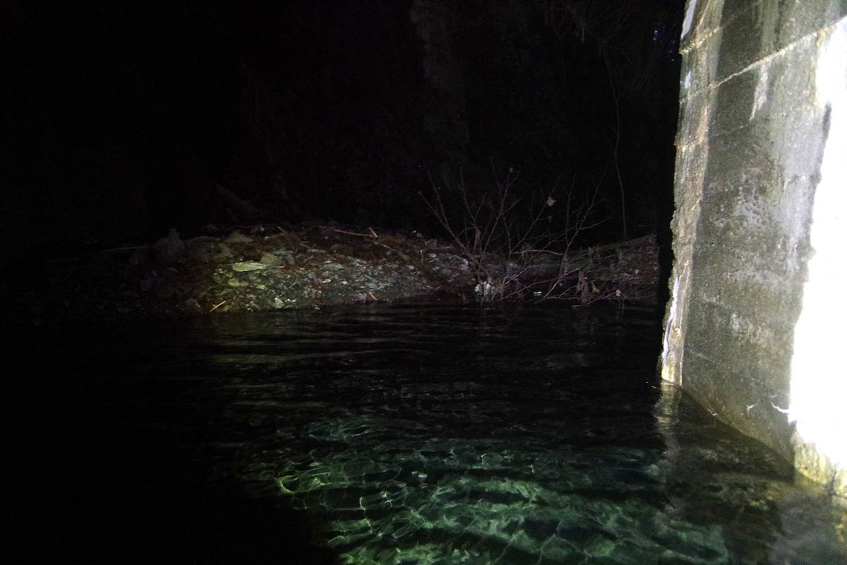 その奥は闇で分からないが、ちょうどその辺りでコンクリートの巻き立てが終わっているっぽい。奥は素掘りの可能性大。