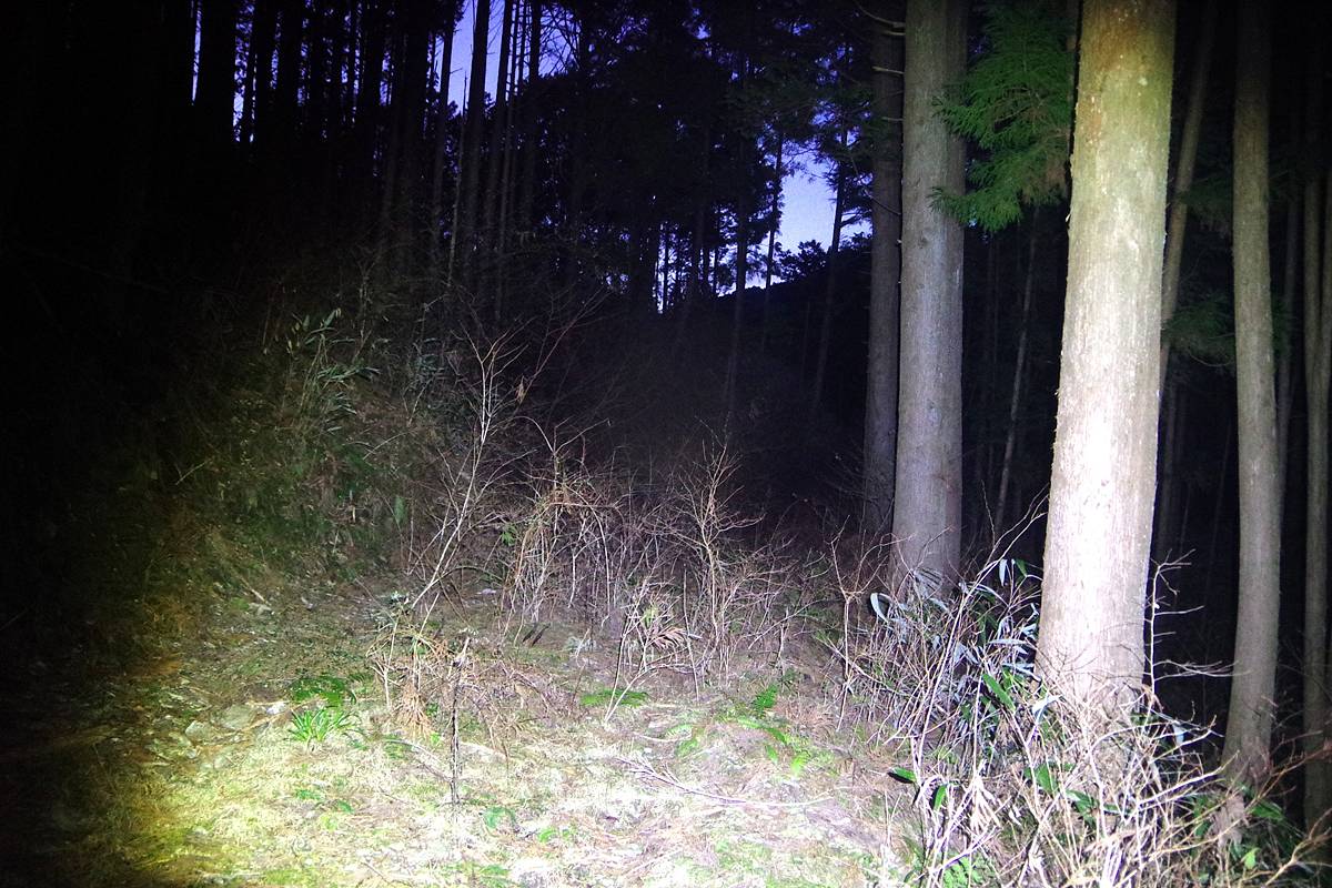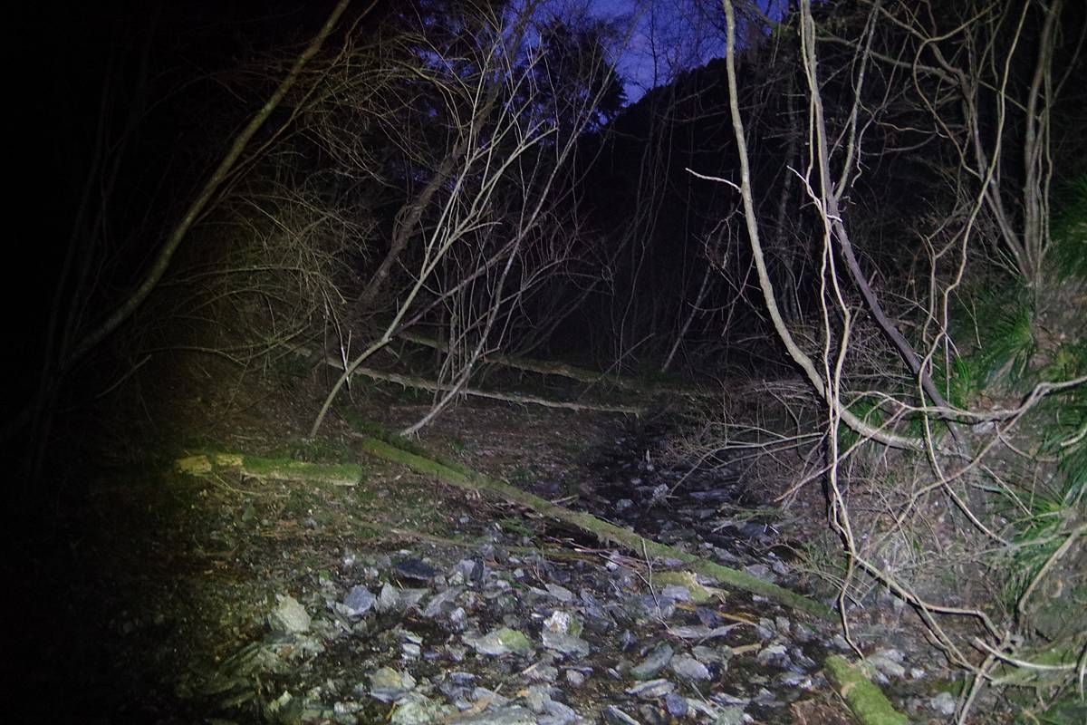 ライトがなければ前が見えない状況だが、先ほども書いたとおり、ここから先は明日改めて明るい時間に再訪しようと思っている。