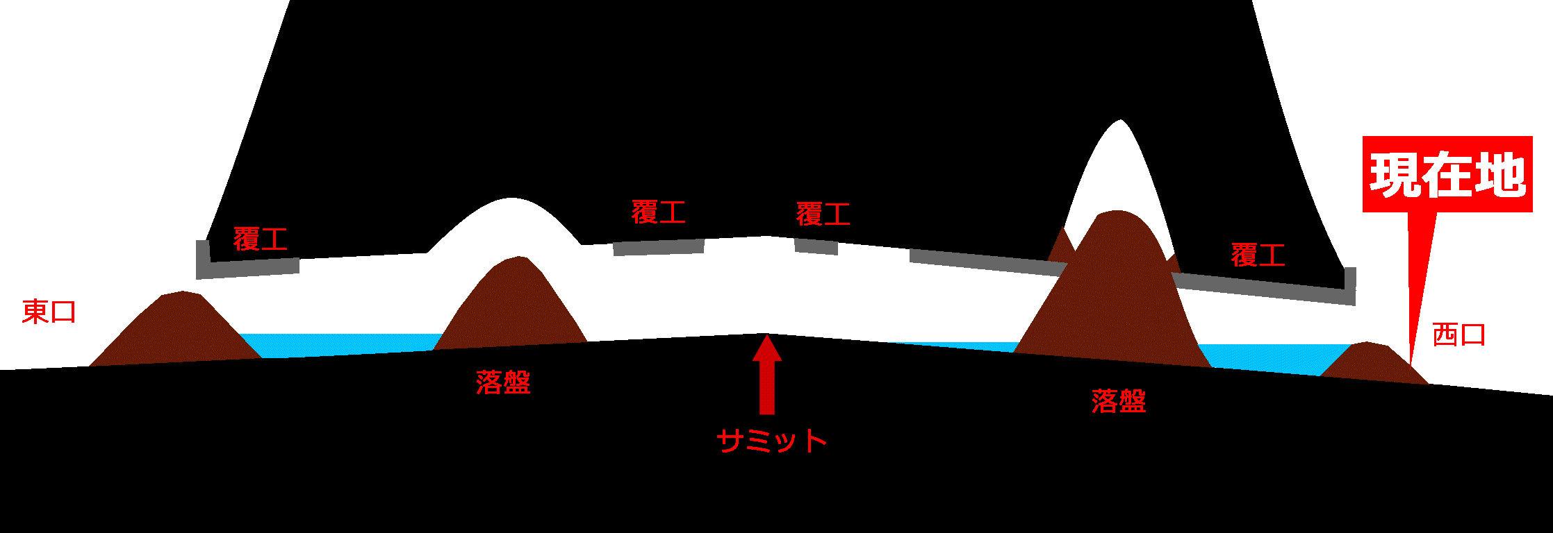 隧道内の状況をまとめた簡単な断面図を作成してみた。