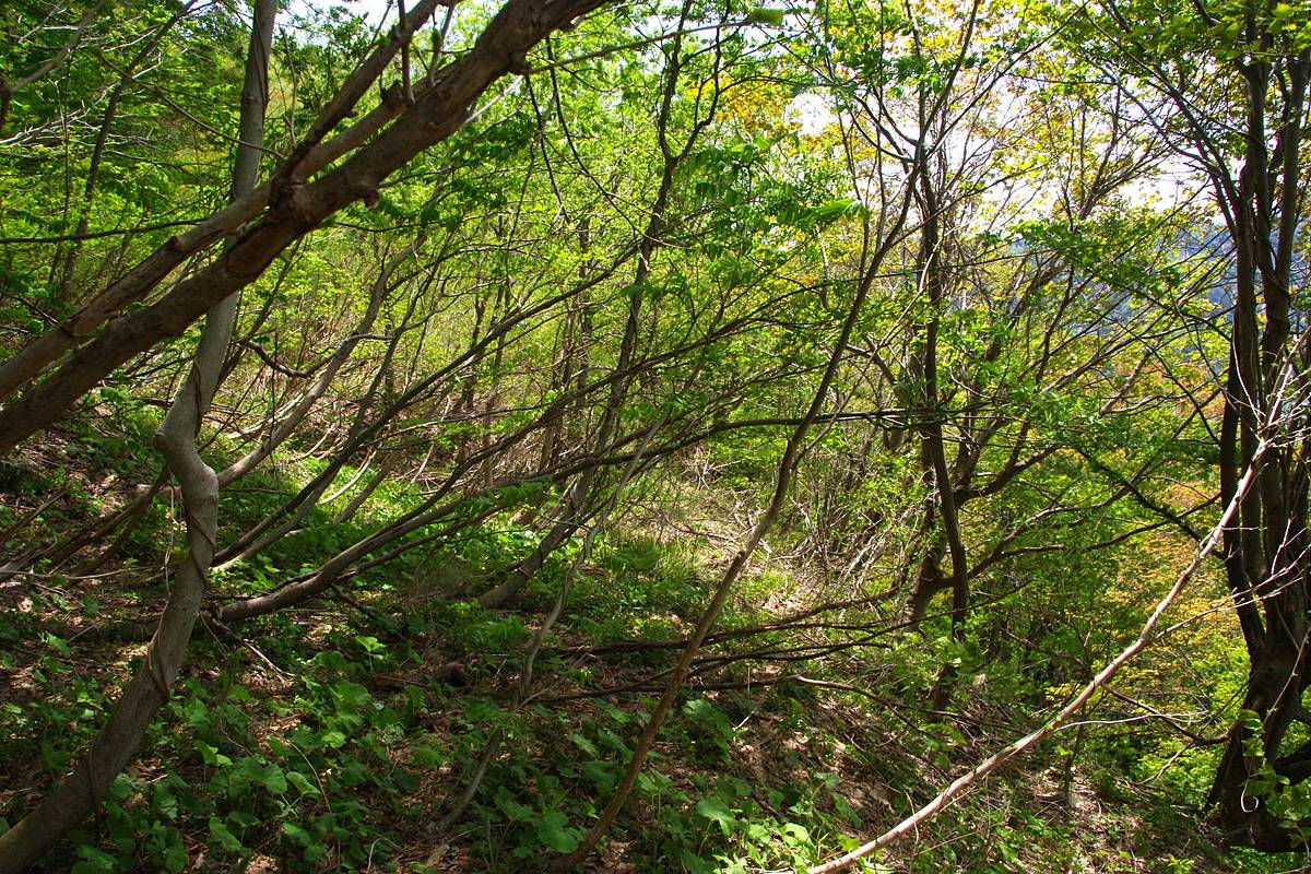 この先、仄かに左の山側へ切れ込んでいく谷地形があるのが感じられる。