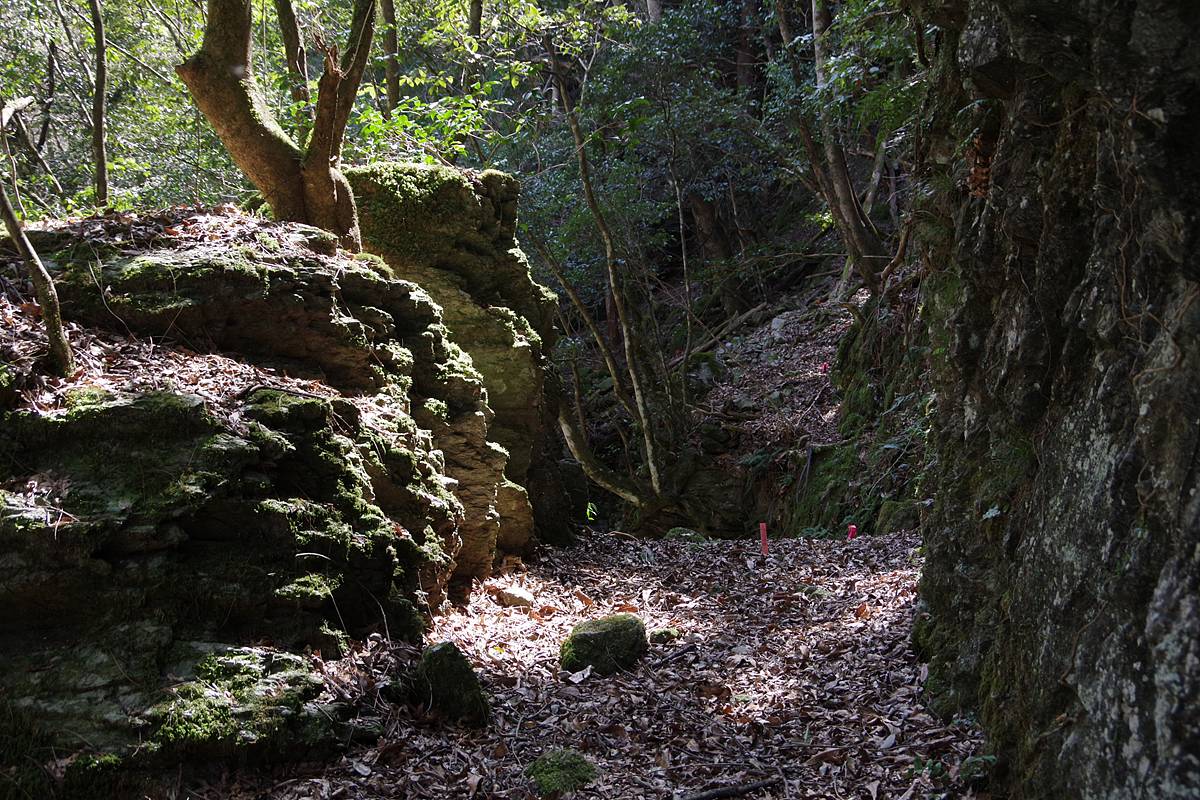 辿り着いた続きの路盤は、両側が鋭く切り立つ切り通しであった。