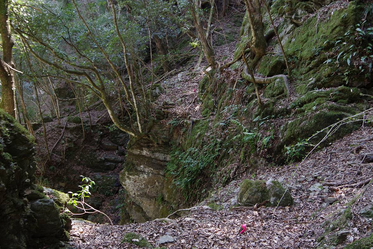 向こう側の続きの路盤は間近に見えるが、果たしてこの断絶を越えられるのか、不安を感じる地形であった。
