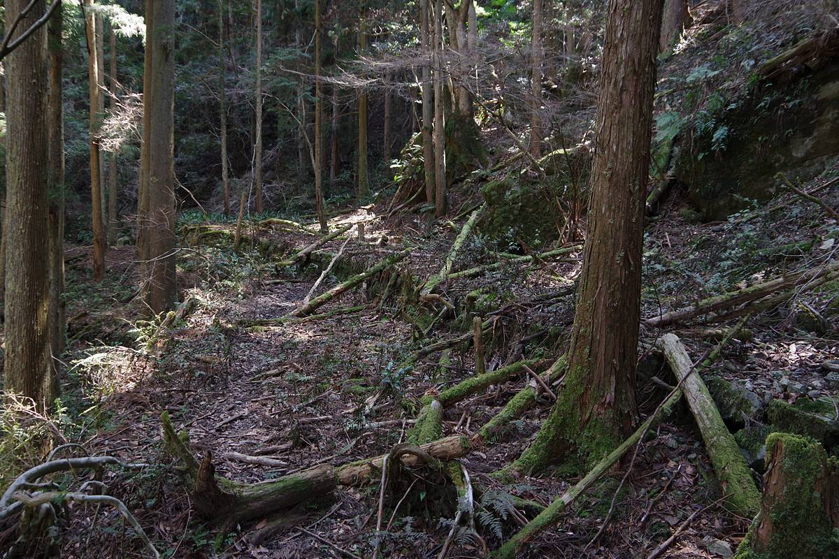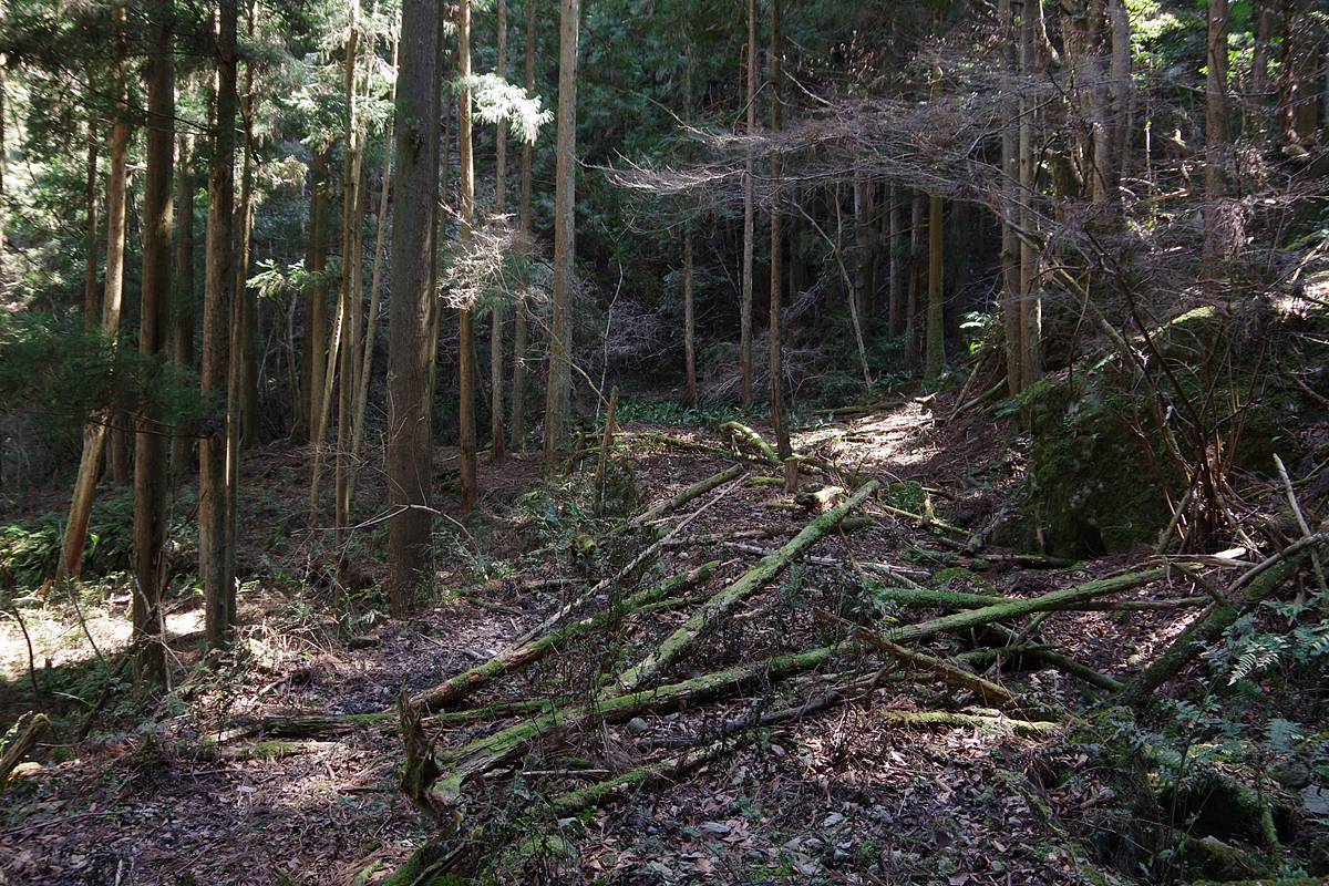 ずいぶんと林相の荒れ果てたスギ林であるため、倒木や落ち枝が多くて歩きづらかったが、命に関わる難所よりはマシであると言い聞かせながら進んだ。