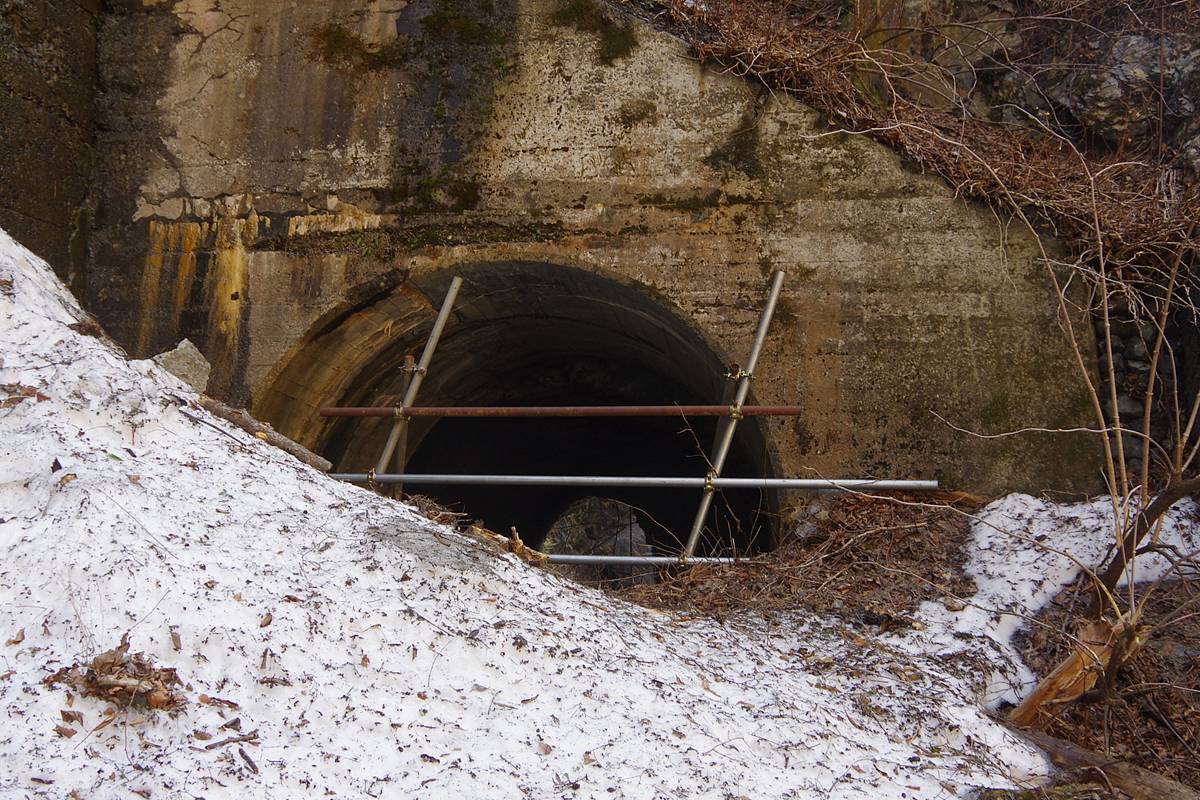 大方、後年の改築によるものだろうと思ったが、既に廃トンネルであった坑口を改築で塞いでしまうのではなく、このように再整備したとすれば、その目的は気になるところだ。立地的に、登山道や遊歩道としての活用を考えたものか、別の理由からか。